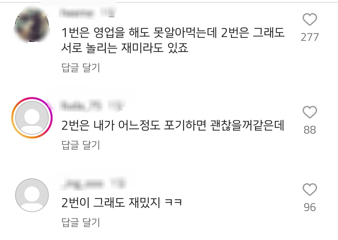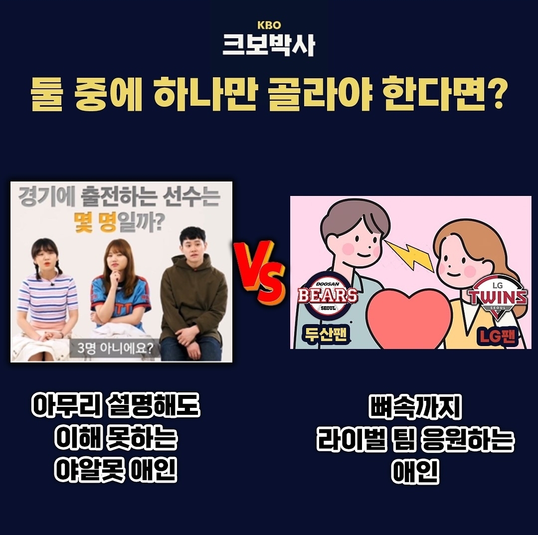 [스크랩] [흥미돋][KBO] 아무리 설명해도 이해못하는 야알못 애인 VS 뼛속까지 라이벌팀 응원하는 애인 작성자냐웅잉|작성시간25.03.19|조회수5,607 목록 댓글 89 글자크기 작게가 글자크기 크게가 출처 : 여성시대 베뀨ㅊㅊ ㄷㅋ의외로 댓글보면 2가 압도적으로 많음ㅋㅋㅋㅋㅋ 다음검색 스크랩 원문 : *여성시대* 차분한 20대들의 알흠다운 공간 현재 게시글 추가 기능 열기 북마크 공유하기 신고 센터로 신고 댓글 댓글 89 댓글쓰기 답글쓰기 댓글 리스트 작성자갤럭시S25 | 작성시간 25.03.20 난 1... 존나 잘 긁힘 내가 ㅋㅋㅋㅋㅋ 작성자gv70 | 작성시간 25.03.20 1이 나아........... 작성자재석_ | 작성시간 25.03.20 2번은 절대안됌 답댓글 작성자재석_ | 작성시간 25.03.20 차라리 1번만나면서 야구입덕시키고말지 작성자한도영 | 작성시간 25.03.20 1.. 2는 안돼 댓글 전체보기