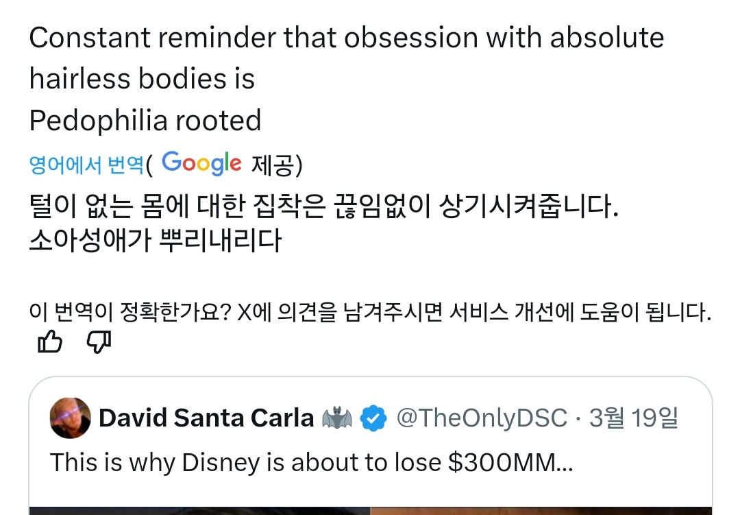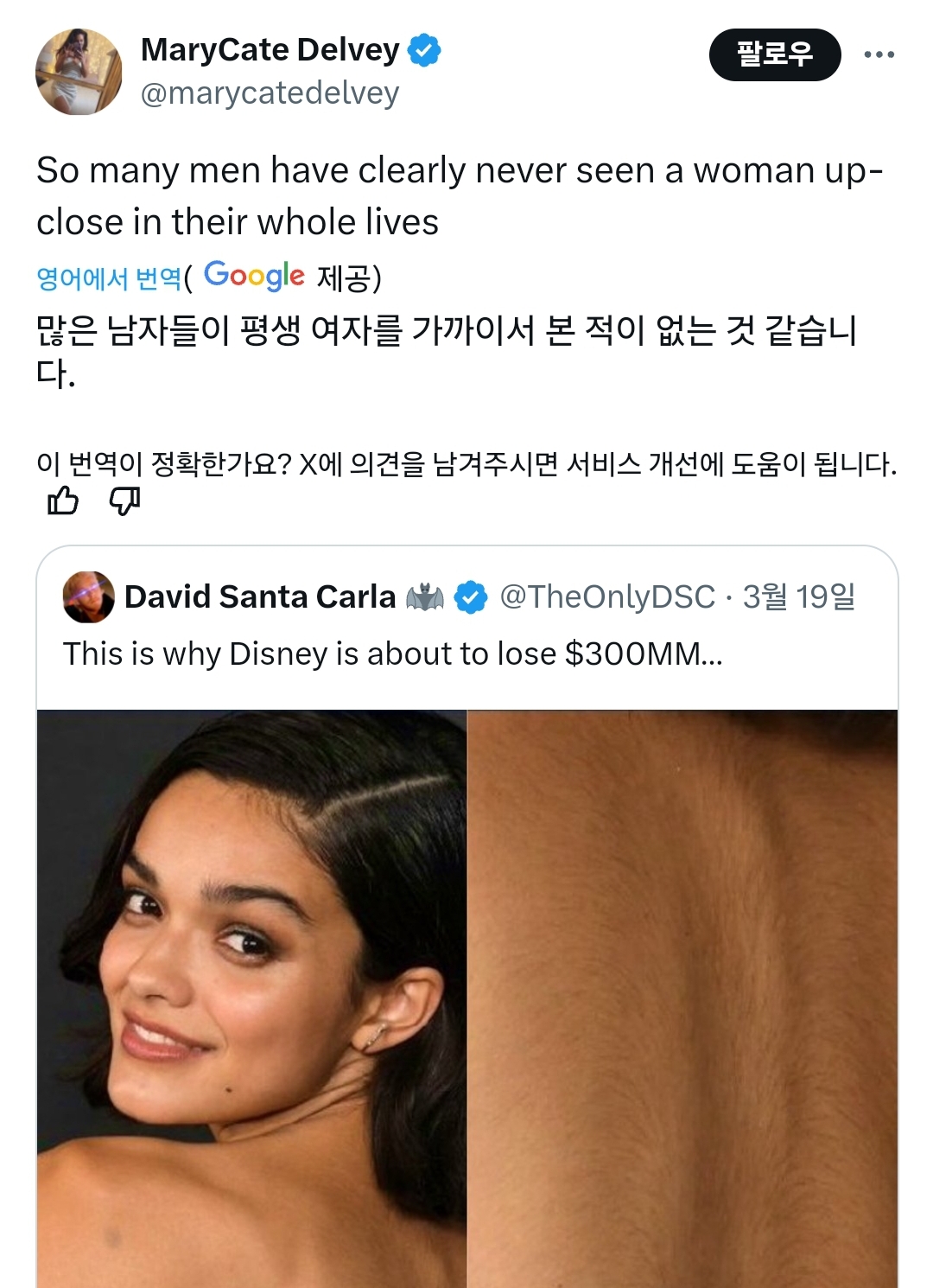 디즈니가 망한 이유 = 여배우 등 확대하니까 털 있어서