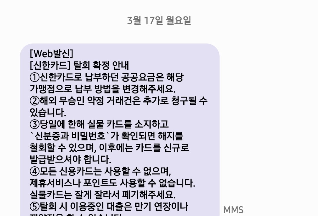 신한카드 앱으로 해지신청하면 10분안에 전화온다