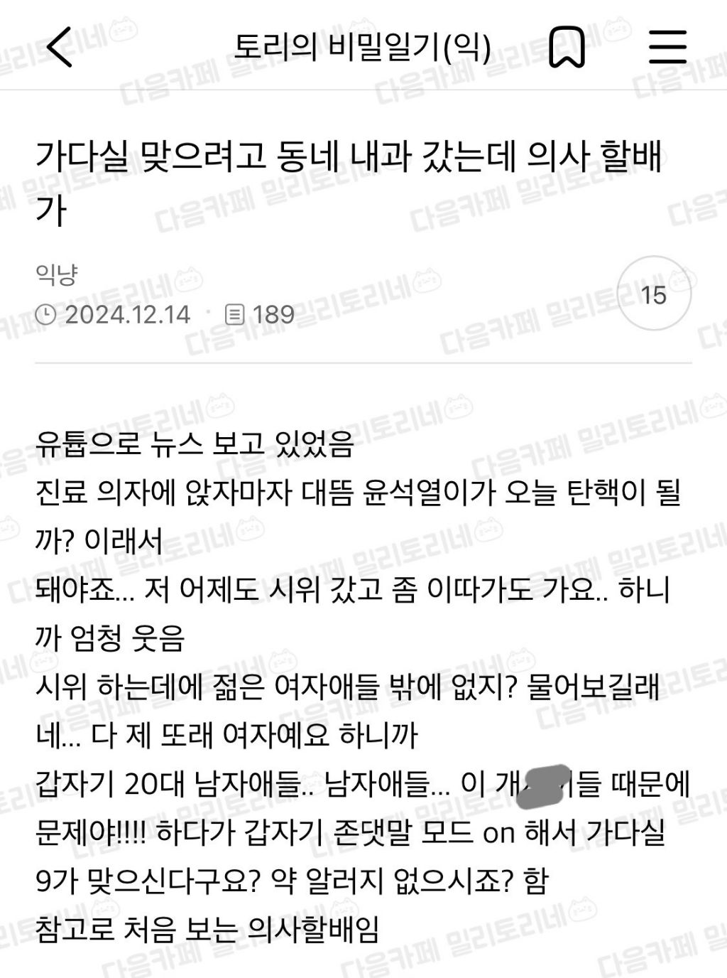 [흥미돋]가다실 맞으려고 동네 내과 갔는데 의사 할배가 작성자열심히햄마|작성시간25.03.20|조회수22,739 목록 댓글 80 글자크기 작게가 글자크기 크게가 출처: https://x.com/m1mchive/status/1901889693052277029?t=AMHfWXt9sJI1mICNvdubeQ&s=19공사 구분 확실한편 다음검색 현재 게시글 추가 기능 열기 북마크 공유하기 신고 센터로 신고 댓글 댓글 80 댓글쓰기 답글쓰기 댓글 리스트 작성자오렌지버섯 | 작성시간 25.03.20 ㅋㅋㅋㅋㅋㅋ 아 작성자반일을 외치며 이득을 취하는 여시 | 작성시간 25.03.20 ㅋㅋㅋㅋㅋ믿음직스럽네욬ㅋㅋㅋㅋㅋㅋ 작성자밀레시안 | 작성시간 25.03.20 믿음직 작성자신인류의 사랑 | 작성시간 25.03.20 ㅋㅋㅋㅋㅋㅋㅋ 업무는 프로페셔널 작성자똔똔이 | 작성시간 25.03.20 ㅋㅋㅋㅋㅋㅋㅋㅋㅋㅋㅋ 댓글 전체보기
