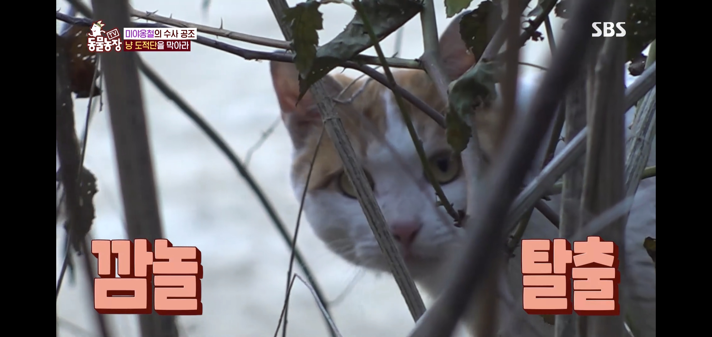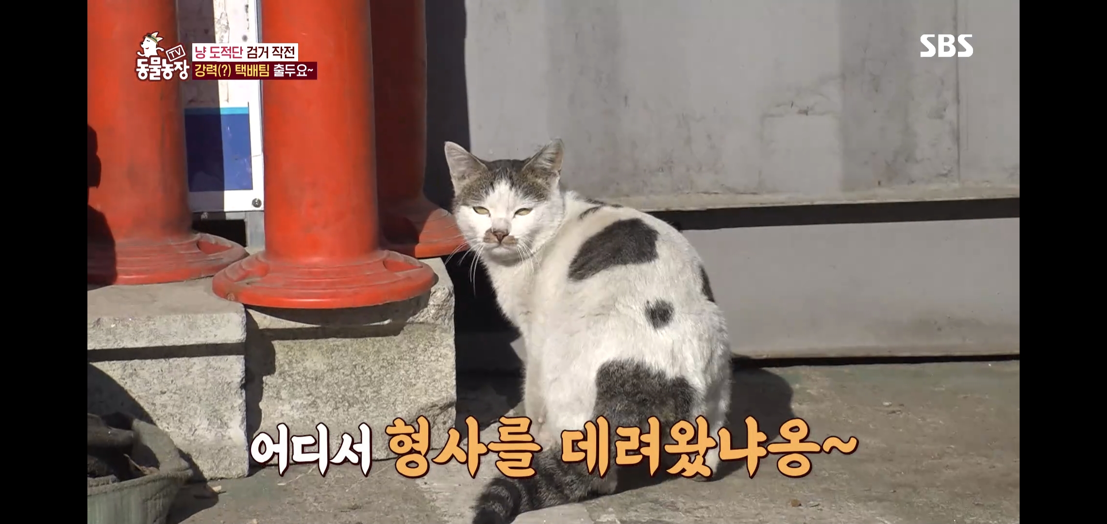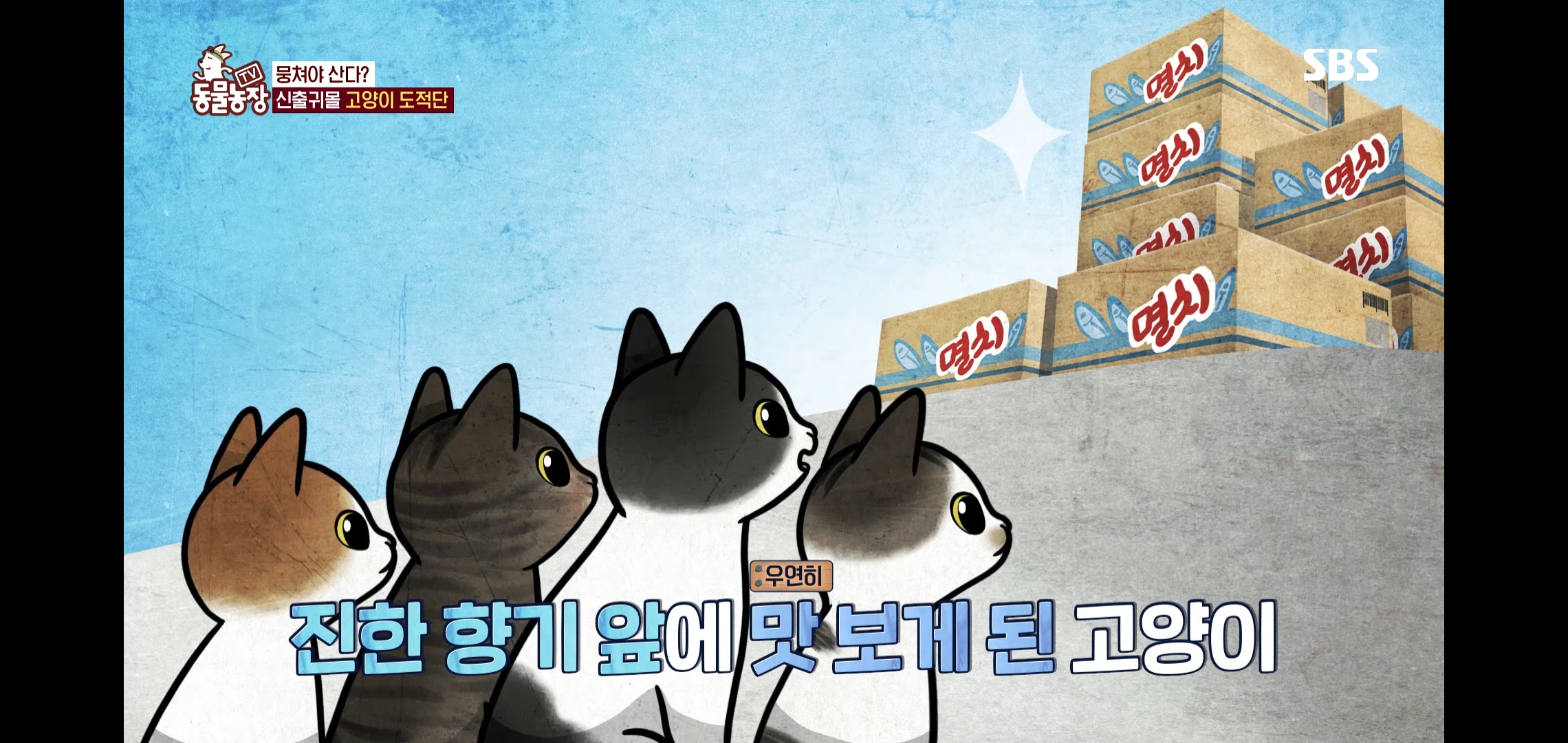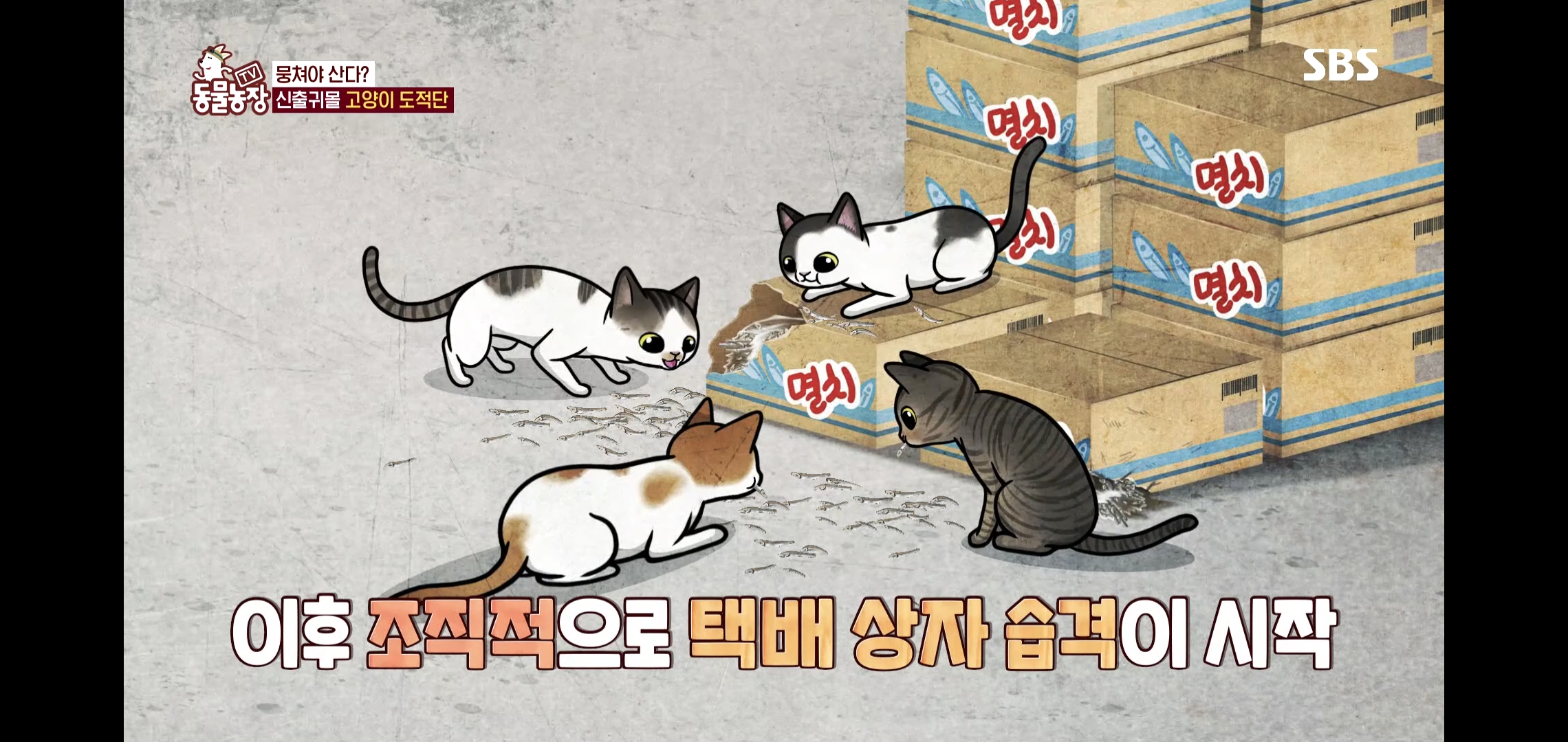 고양이들의 범행을 보고 어이없어하는 미야옹철
