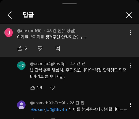 애니멀바에 올라온 유튜브 영상 댓글에