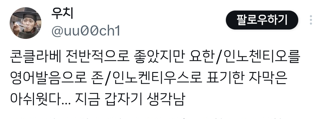 작성자말해말해말해 작성시간 25.03.29 밀국에서 봤을때는 요하네스라고 자막 나왓얶는데ㅠ왜 존이라고 햇댜....