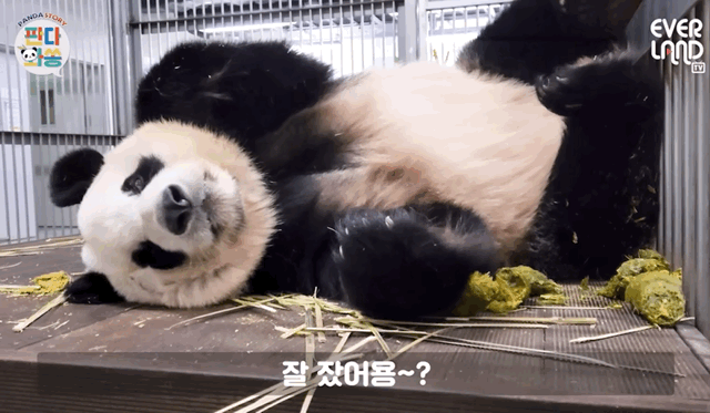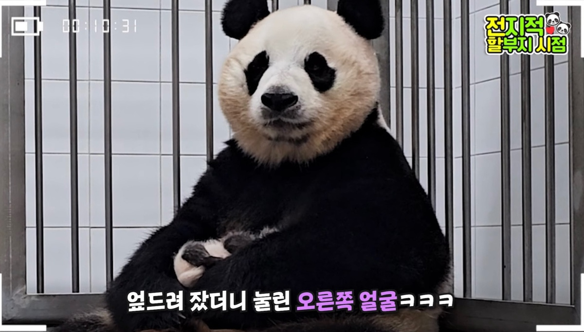 판다도 자다 일어나면 얼굴이 눌리거든요