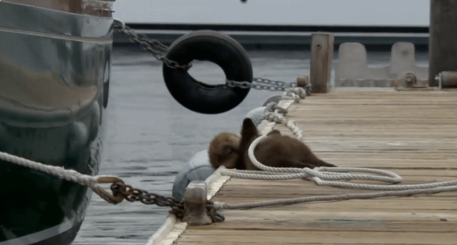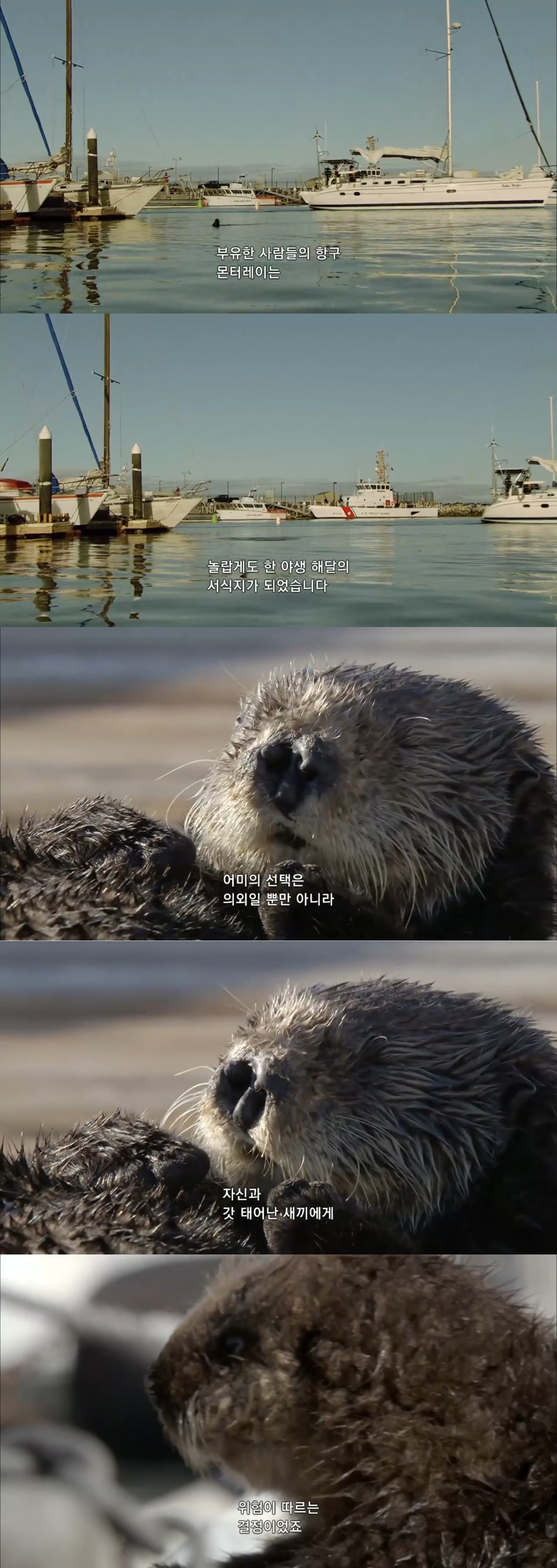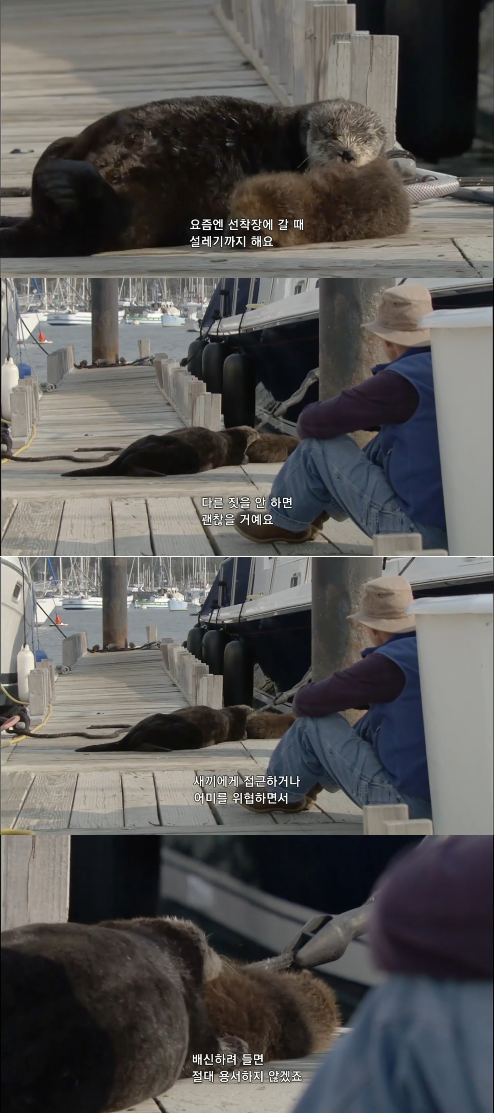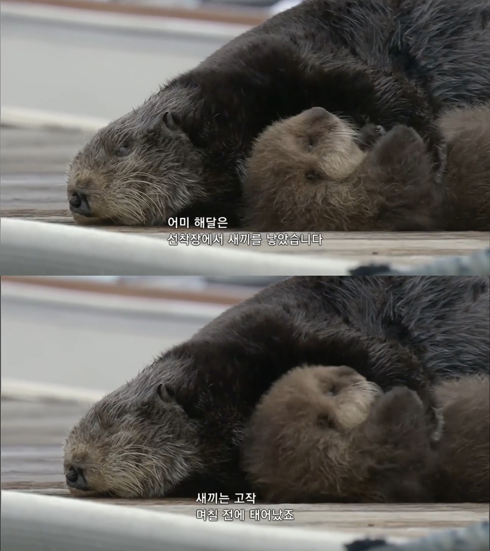 해달 친구들이 살고 있는 해안가가 아닌 선착장에 새끼를 낳은 해달