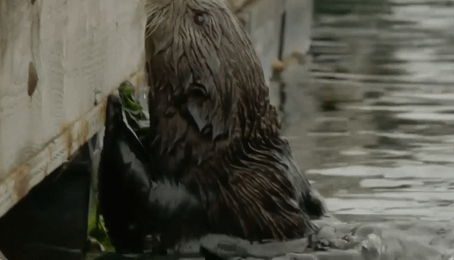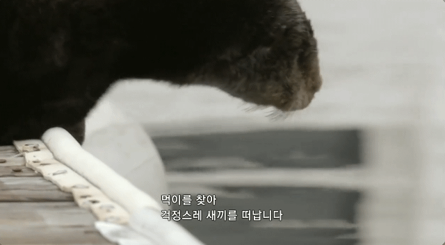 출산 후 먹이를 못 먹은 해달은 먹이를 찾기위해 바다로 들어감