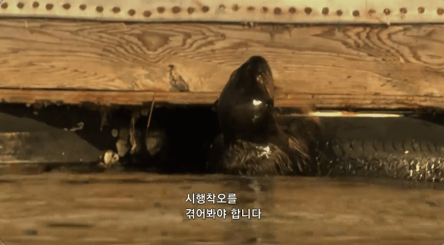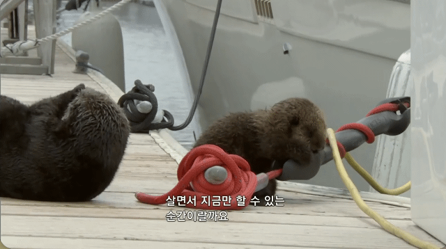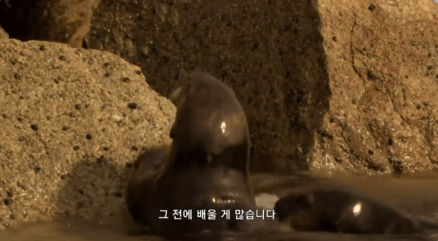 새끼 해달은 그런 엄마를 따라 나무나 고무에 깨보려하지만 실패ㅋㅋㅋㅋㅋㅋㅋㅋ