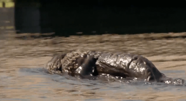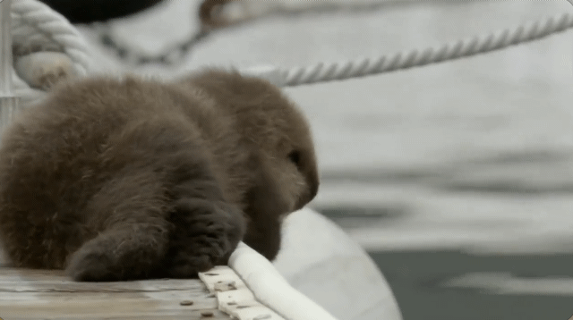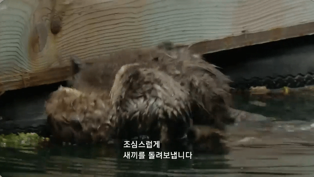해달 답게 바다에 금방 적응하는 새끼 해달