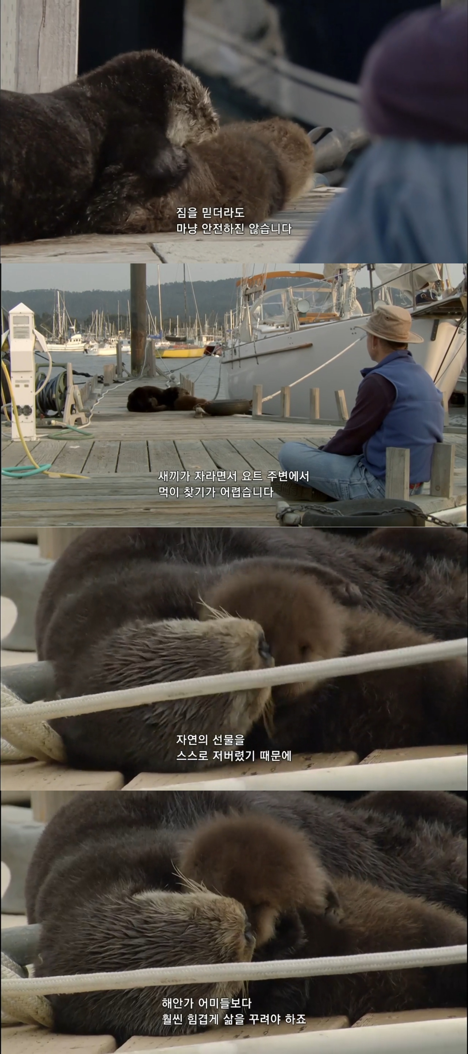 그러나 먹을 거 많은 해안가를 떠나 요트 선착장에서 살기란 힘든 일임...