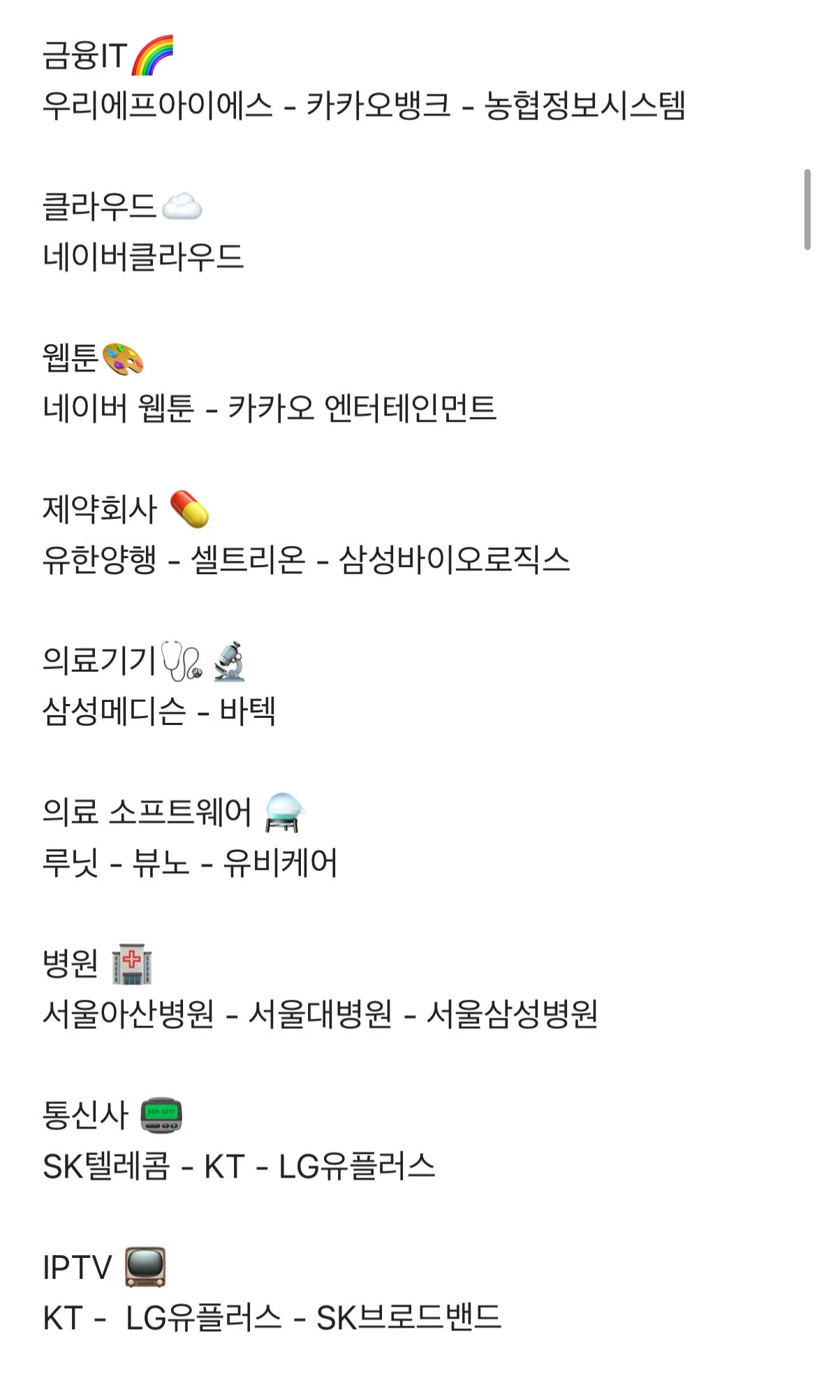 작성자묭묭묭묭이 작성시간 25.03.21 그냥 지가 들어본 회사이름 쓴듯 ㅋㅋ