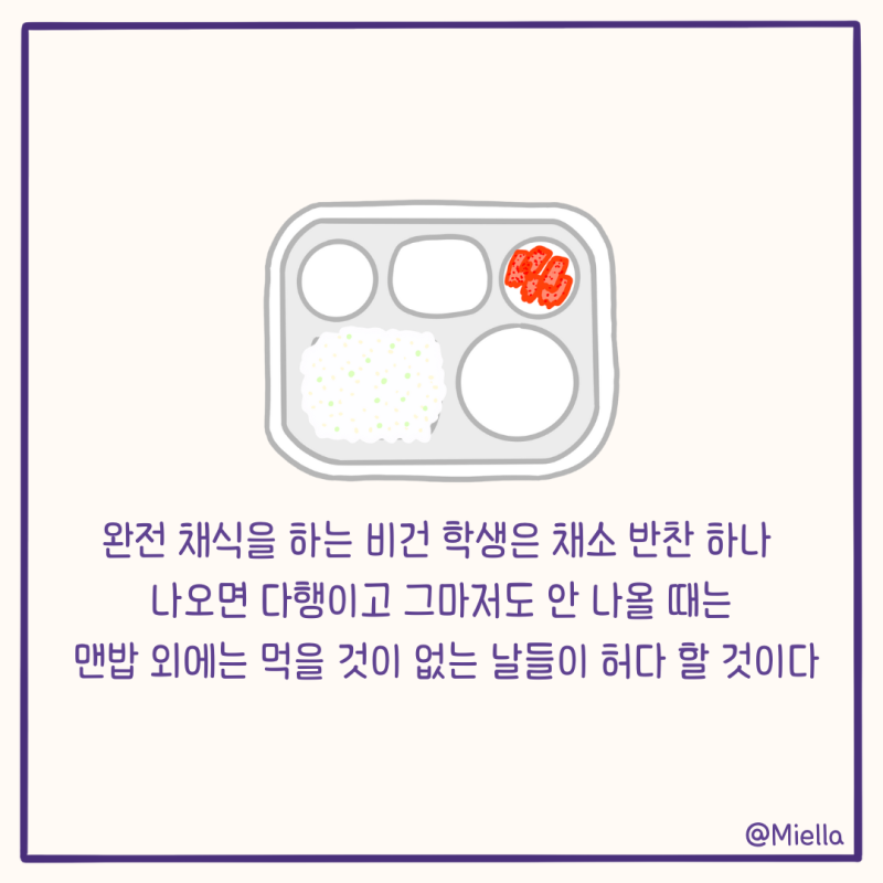 현실적으로 채식 급식 나오면 안먹겠다고 매점가는애들이 부지기수임 ... 수요도 없고 사회적으로 꼭 필요한 사안이라 생각되진않늠 -