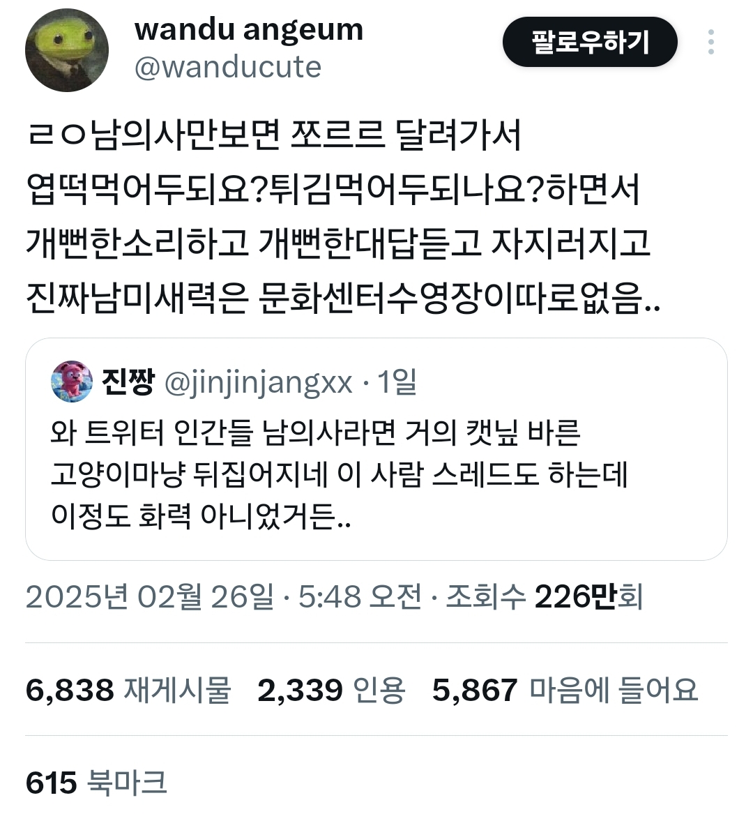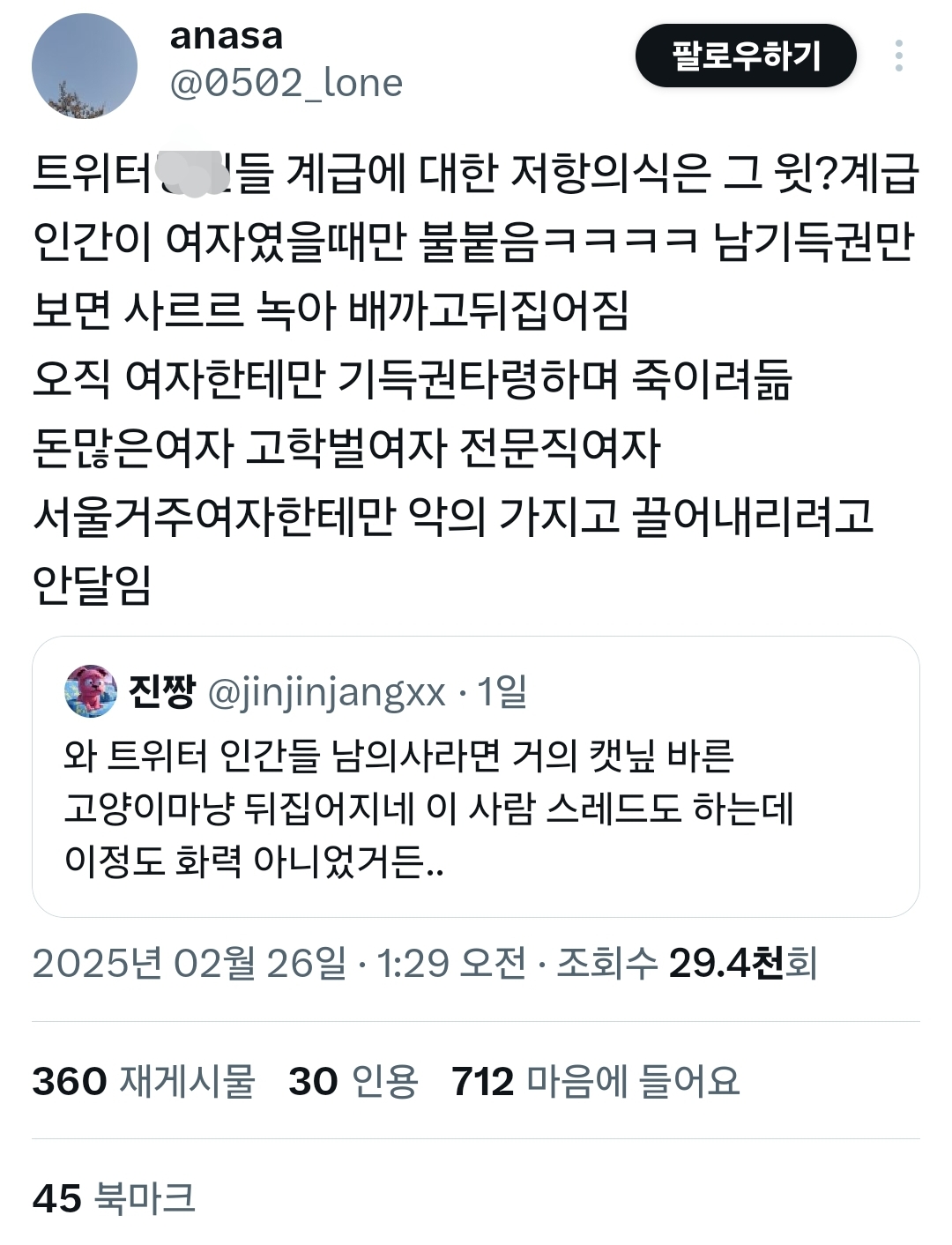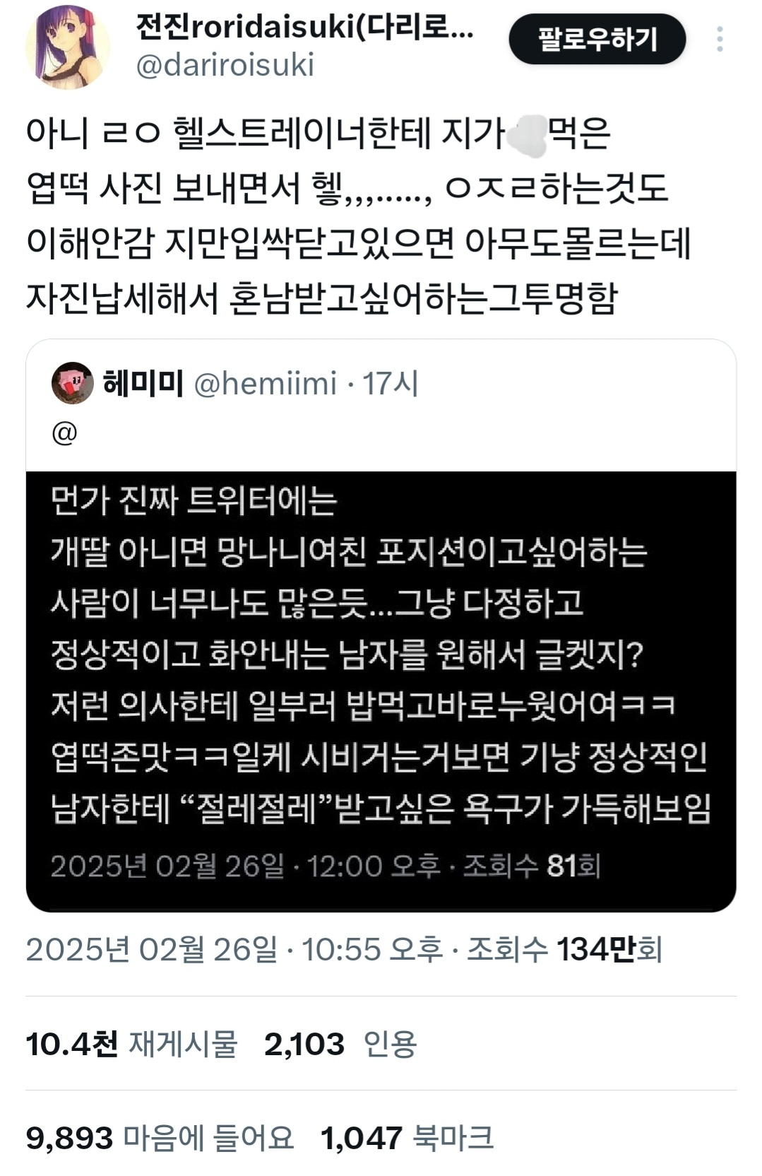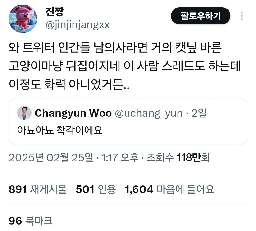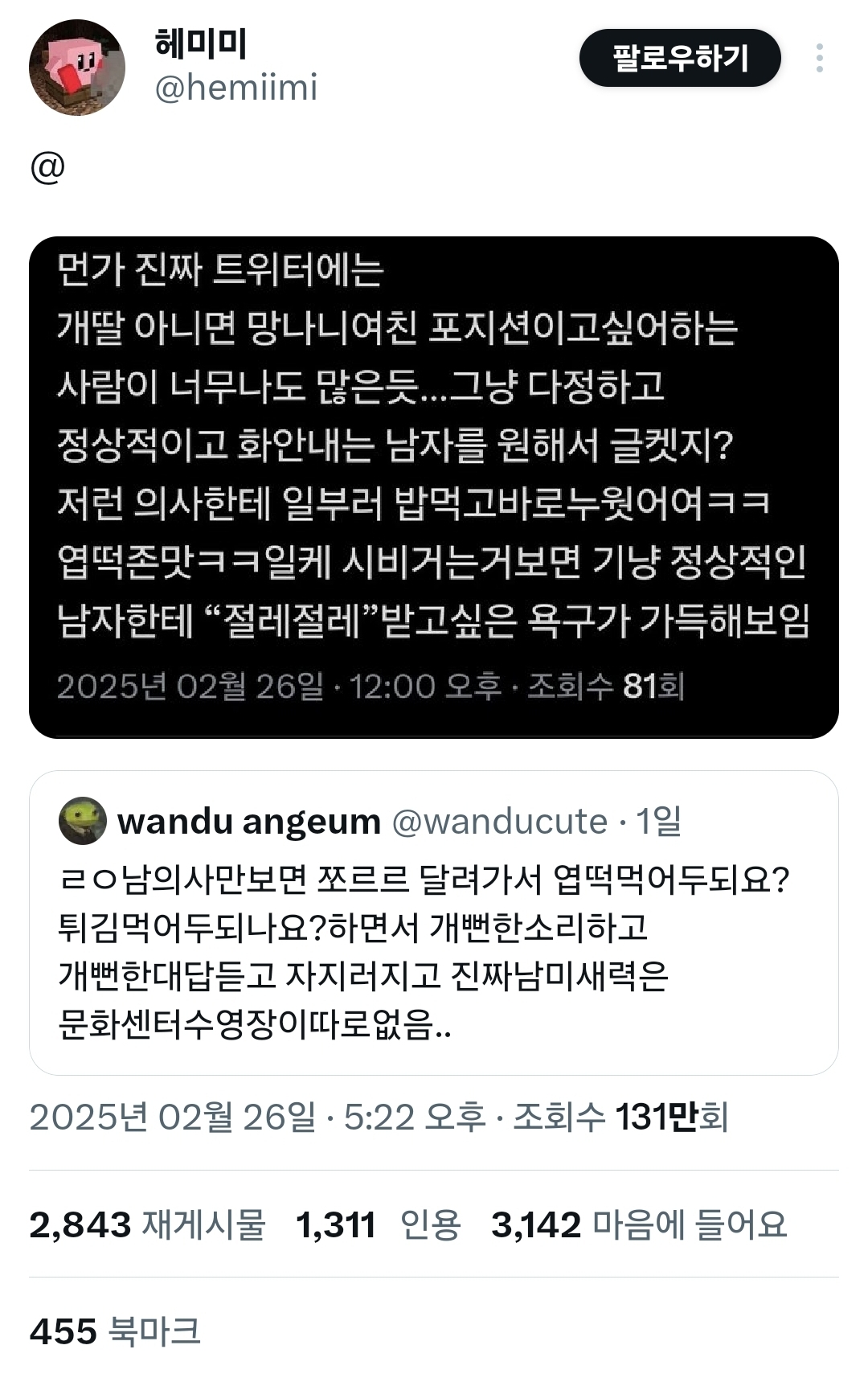 그 의사 트윗에 멘션이랑 인용으로 남미새 글이 엄청 올라왔음