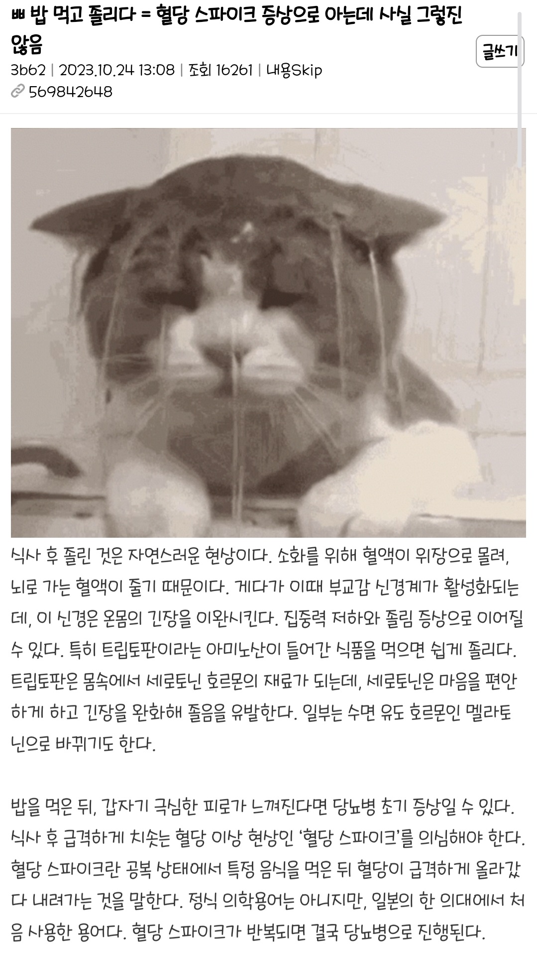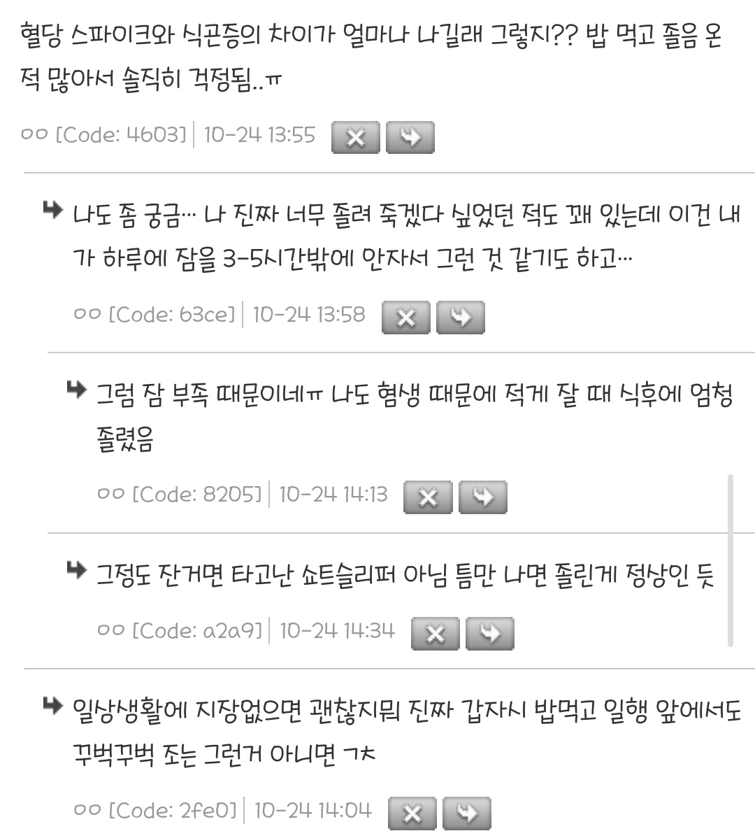 작성자AliExpress 작성시간 25.03.21 난 밥 먹는 중간부터 졸려.. 다 먹고서는 꾸벅꾸벅 졸고.. 공복혈당도 정상이고 식후 2시간 혈당도 172 나오던데 식곤증인가..?
