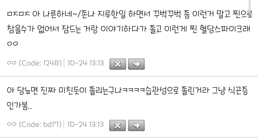 작성자당뇨 작성시간 25.03.21 그냥 내가 제어가 안됨... 회사에서 일하다가 마우스잡은채로 잤음 내가 졸렸는지도 기억이안남