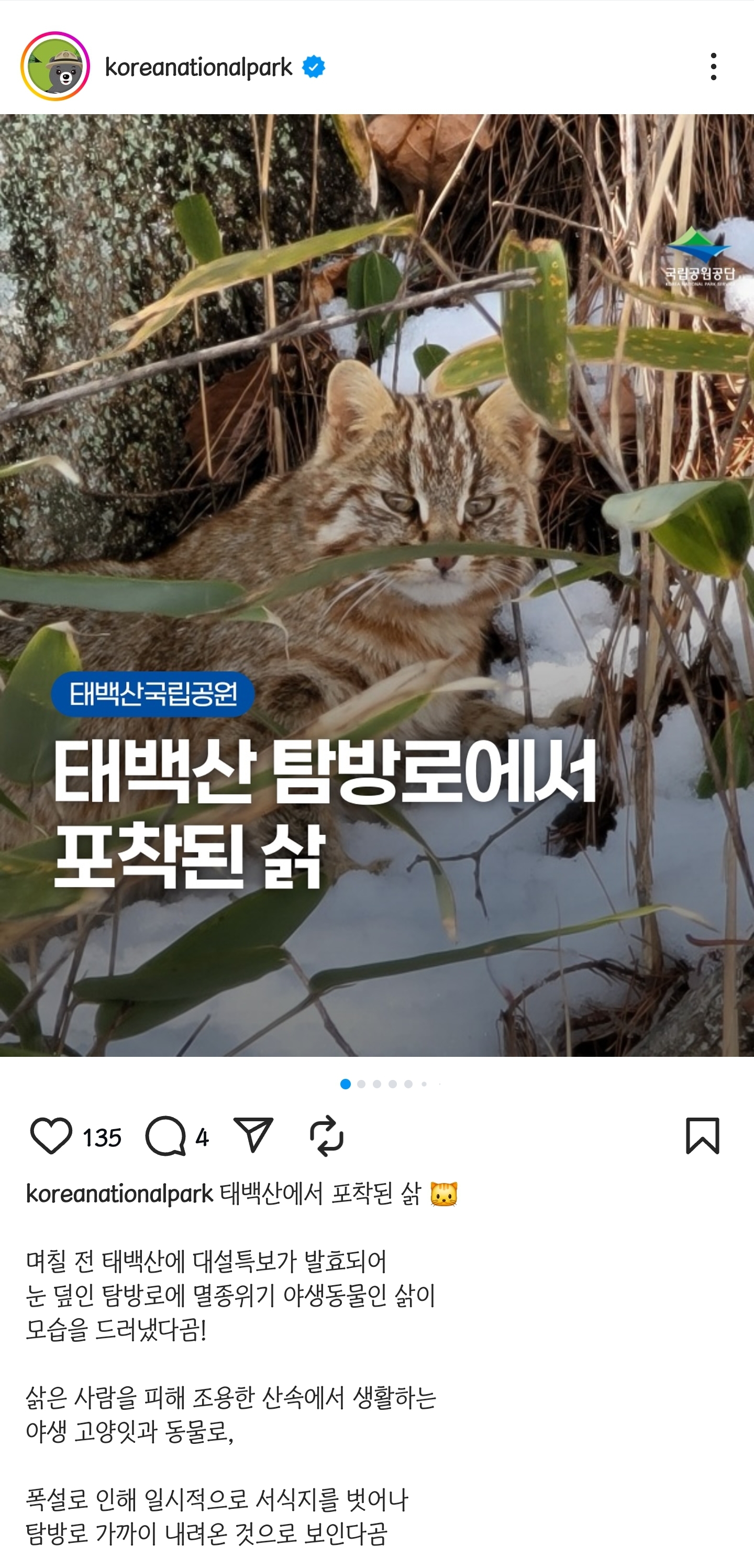 [흥미돋]누가 산에 고양이를...하... 작성자윤석열한테 살 날리는 중|작성시간25.03.21|조회수62,703 목록 댓글 289 글자크기 작게가 글자크기 크게가 출처: 여성시대 윤석열한테 살 날리는 중태백산에 누가 고양이를... 버리고... 하...저렇게 이쁜 냥이를...ㅠㅠㅠㅠㅠㅠ....는 칡이라곰사람들 다니는 탐방로 가까이까지 와서 사진 찍혔나 봄 🥹근데 진짜 고양이같아서 너무 귀여움 산에 고양이들 은근 많은데산냥이인 줄 알고 다가갔다가 손 내밀면... (?최근에 무등산에서도 발견된 삵생각보다 많은 지역에 있나 봄 귀여워.... 다음검색 현재 게시글 추가 기능 열기 북마크 공유하기 신고 센터로 신고 댓글 댓글 289 댓글쓰기 답글쓰기 댓글 리스트 작성자무조건 한 번은 꼭 먹는다 | 작성시간 25.03.23 칡 작성자익스펠리아무스 | 작성시간 25.03.23 칡 맹수잖아 작성자강쥐들언니 | 작성시간 25.03.23 헉 작성자행운행복가득 | 작성시간 25.03.24 칡이잔아! 작성자레미제랄부 | 작성시간 25.03.25 칽 댓글 전체보기