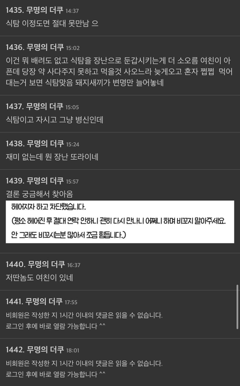 [스크랩] [칵.cxxx]이게 식탐일까요 장난일까요 작성자고양이 도적단|작성시간25.03.21|조회수28,029 목록 댓글 200 글자크기 작게가 글자크기 크게가 출처 : 여성시대 좋은 것들에 대해 생각해1차 출처 네이트판2차 출처 더쿠3차 출처 트위터…에서 퍼옴 다음검색 스크랩 원문 : *여성시대* 차분한 20대들의 알흠다운 공간 현재 게시글 추가 기능 열기 북마크 공유하기 신고 센터로 신고 댓글 댓글 200 댓글쓰기 답글쓰기 댓글 리스트 작성자NCT dream | 작성시간 25.03.23 걍 등신새끼잖아.. 식탐을 넘어서 작성자아아빨자 | 작성시간 25.03.23 저 글 보고 다음 여친한텐 저거 숨기겠지? 존나 음침하고 식탐정병 한남이네 작성자강쥐들언니 | 작성시간 25.03.23 미친ㄴ 작성자북북긁기 | 작성시간 25.03.25 식탐개쩌네 돼지새키 작성자북마크용 | 작성시간 25.03.30 ;;;;;;;;;;;;;;;;;;;;;;;;;;;;;;;;;;;;;;;; 댓글 전체보기