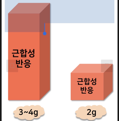 그래프로 예를 들어보자면 보면 겨우 1~2g차이지만 근합성반응 정도는 2배 이상의 차이를 보입니다.