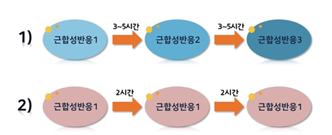 1번은 근합성 반응을 여러 번 이끌어 내지만