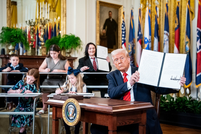 백악관은 이날 서명식에 다양한 학년의 학생들을 초청했다.
