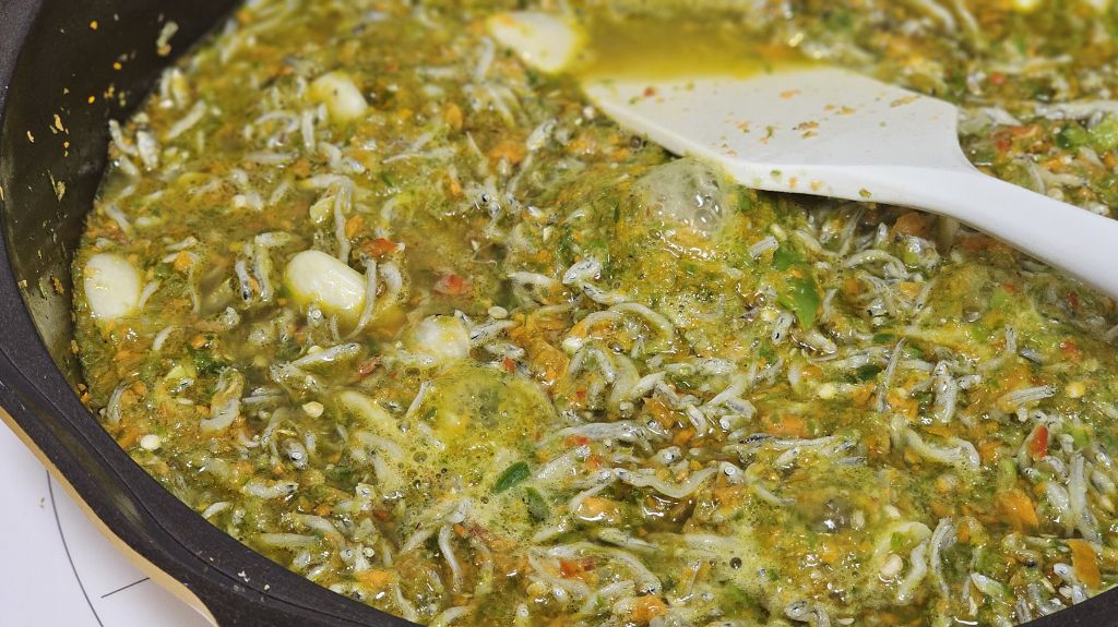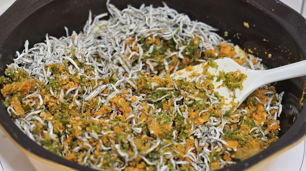 짭짤해서 젓갈처럼 먹는데 큰 팬에 해버림
