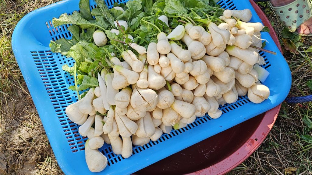 아빠 텃밭 무 중에 귀여운 거 골라서