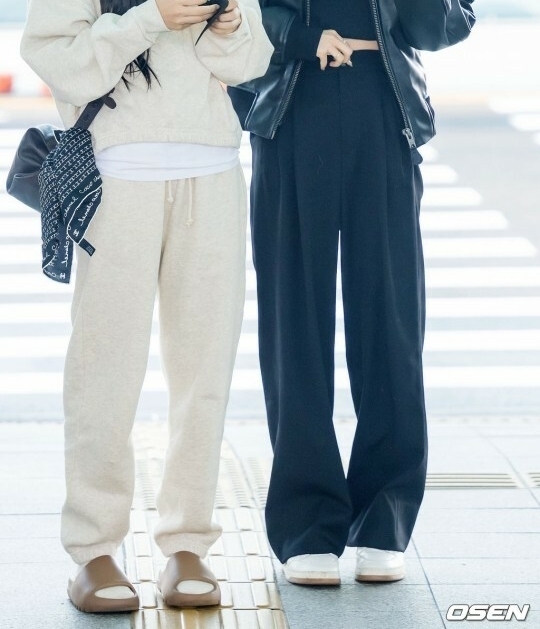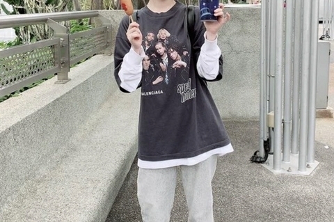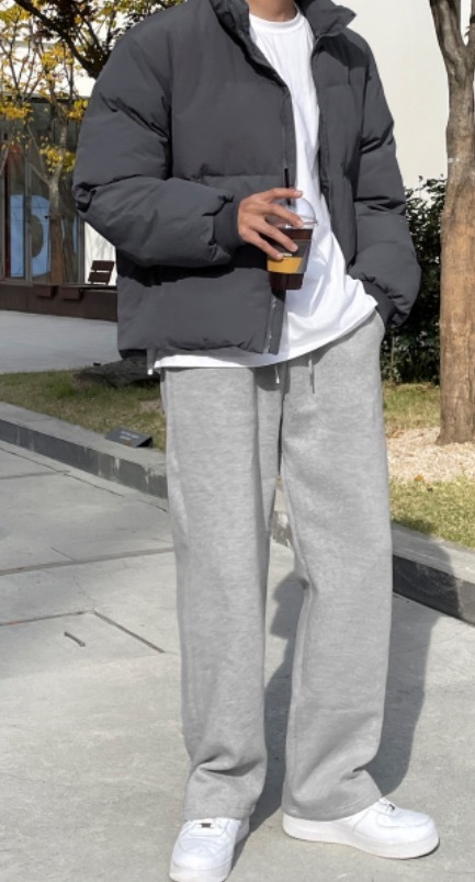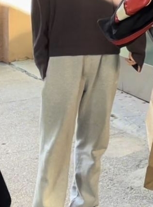 | 츄리닝 바지 하이웨이스트로 통크게 편안하게 많이 입는듯 포멀한 장소 아닌이상 평상복으로도 많이 입는 추세 |
