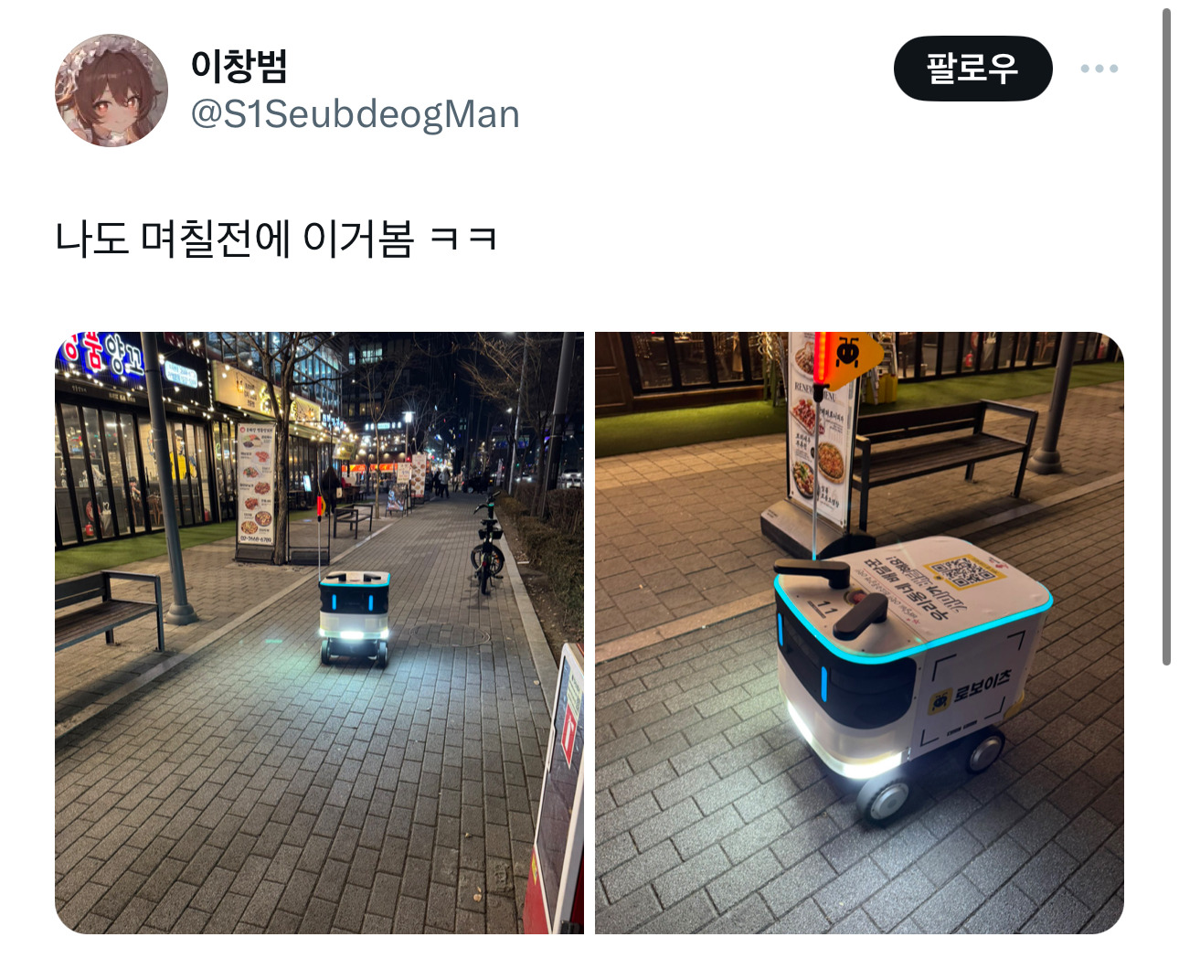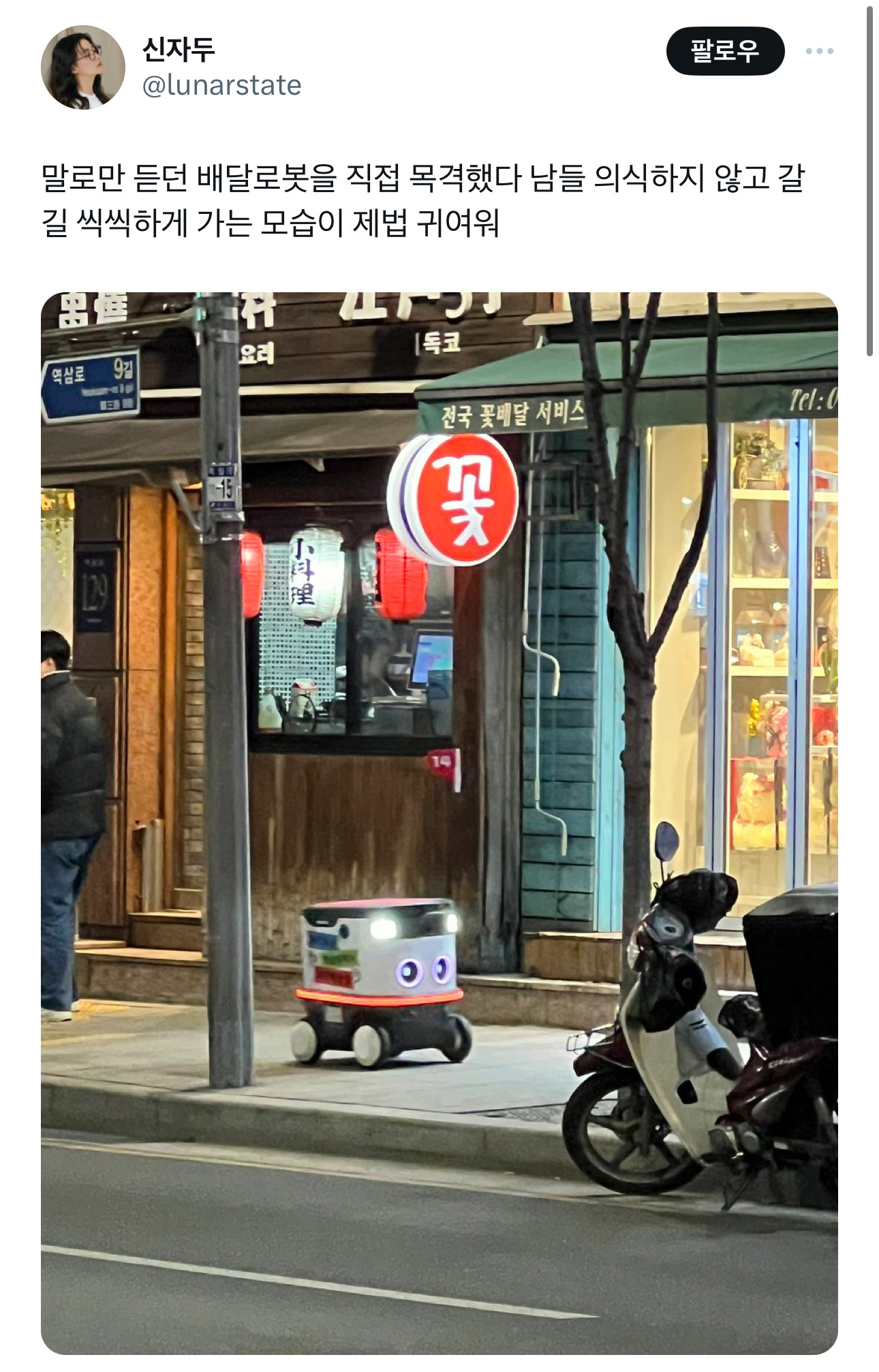 [스크랩] [흥미돋]말로만 듣던 배달로봇을 직접 목격했다 남들 의식하지 않고 갈 길 씩씩하게 가는 모습이 제법 귀여워