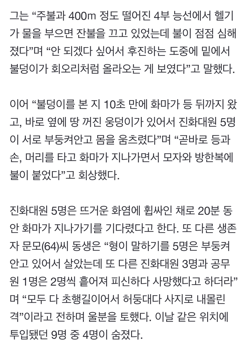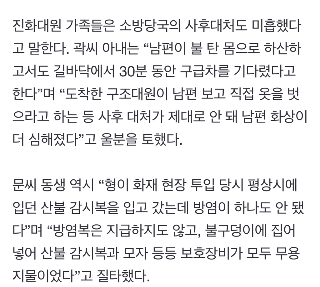 작성자붕어빵무제한제공참말사건 작성시간 25.03.23 방염복이란게 불을 계속 막아주는건 아니여서.. 진짜 방염복을 지급한게 맞다면 뭐 ...