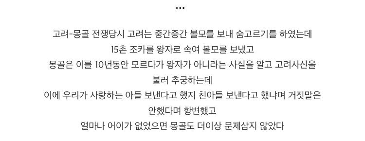 [스크랩] [흥미돋]고려가 미친 나라인 이유 ㅋㅋㅋㅋㅋ 작성자싱낭당|작성시간25.03.23|조회수50,426 목록 댓글 40 글자크기 작게가 글자크기 크게가 당시 몽고 상대로 저 ㅈㄹ함 ㅋㅋㅋㅋㅋㅋ 다음검색 스크랩 원문 : 도탁스 (DOTAX) 현재 게시글 추가 기능 열기 북마크 공유하기 신고 센터로 신고 댓글 댓글 40 댓글쓰기 답글쓰기 댓글 리스트 작성자델리아오언스 | 작성시간 25.03.23 15촌...? 이재용하고도 나도 사촌이것네 ㅎ 작성자갓김치파김치 | 작성시간 25.03.23 ㅋㅋㅋㅋㅋㅋㅋ 아 시밬ㅋㅋㅋㅋㅋㅋ 몽골한테;; 작성자이바닥뜬다 | 작성시간 25.03.23 참나 계약서 자세히 안보냐 아 다르고 어 다른디 작성자미라클모닝하자 | 작성시간 25.03.23 15촌이면 남 아님? 작성자공부하세요 | 작성시간 25.11.17 ㅅㅂㅋㅋㅋㅋㅋㅋㅋㅋ역시 고려 개쎄다 댓글 전체보기