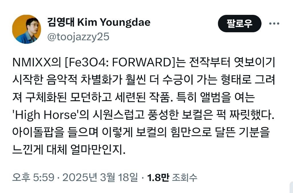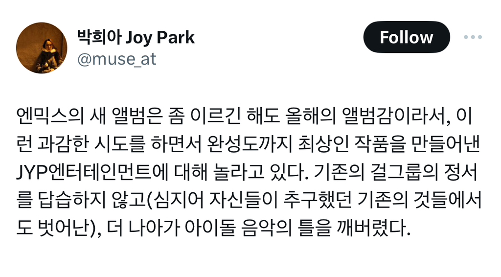 음악 평론가들이 이렇게 줄줄이 다 극찬하는 K팝 앨범 오랜만에 보는듯