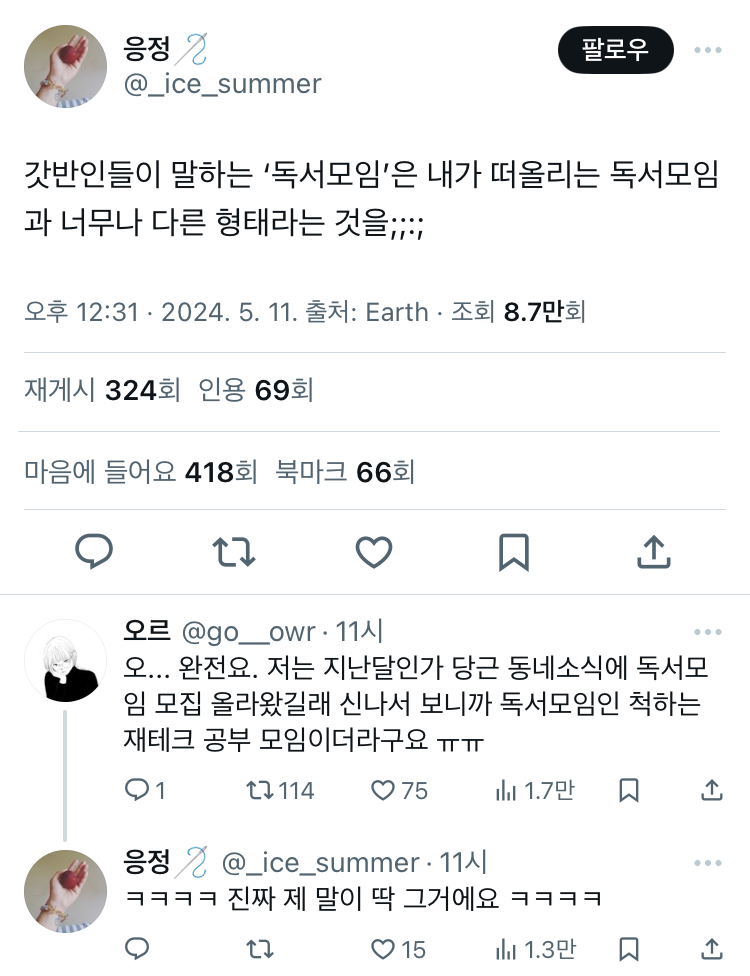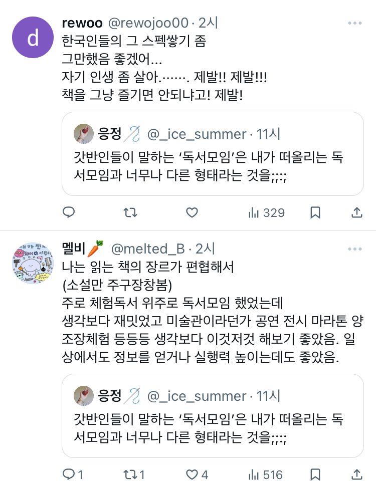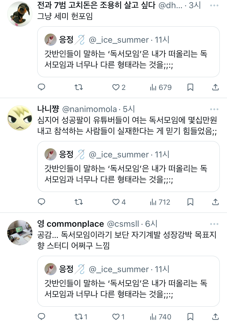 [스크랩] [흥미돋]갓반인들이 말하는 ‘독서모임’은 내가 떠올리는 독서모임과 너무나 다른 형태라는 것을;;:; twt