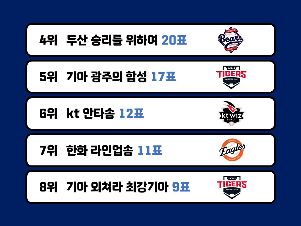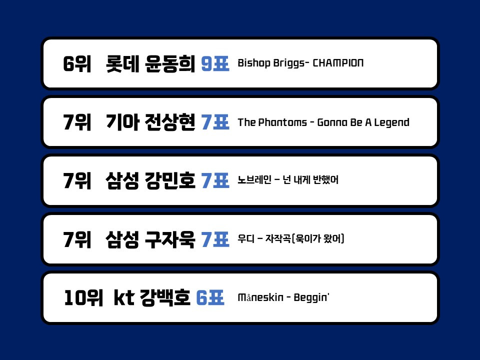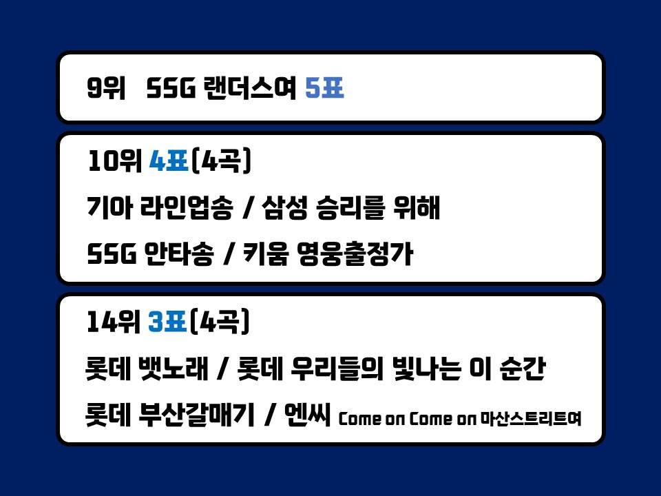 작성자우승만이살길 작성시간 25.03.24 롯데는 걍 다 좋음ㅋㄱㅋㄱ삼팬인데 롯데 응원가는 팀 선수 응원가 다 좋아