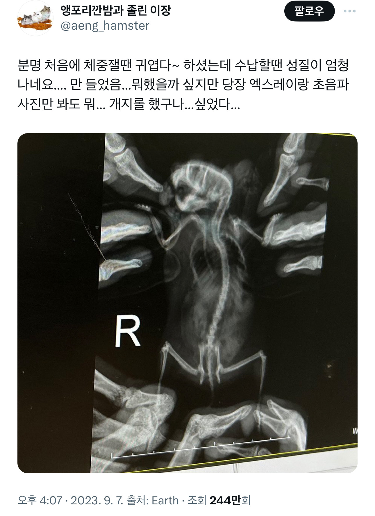 다른 햄들 엑스레이 사진 주운거
