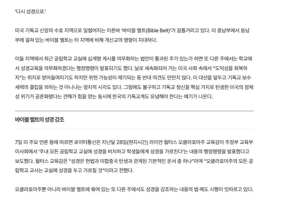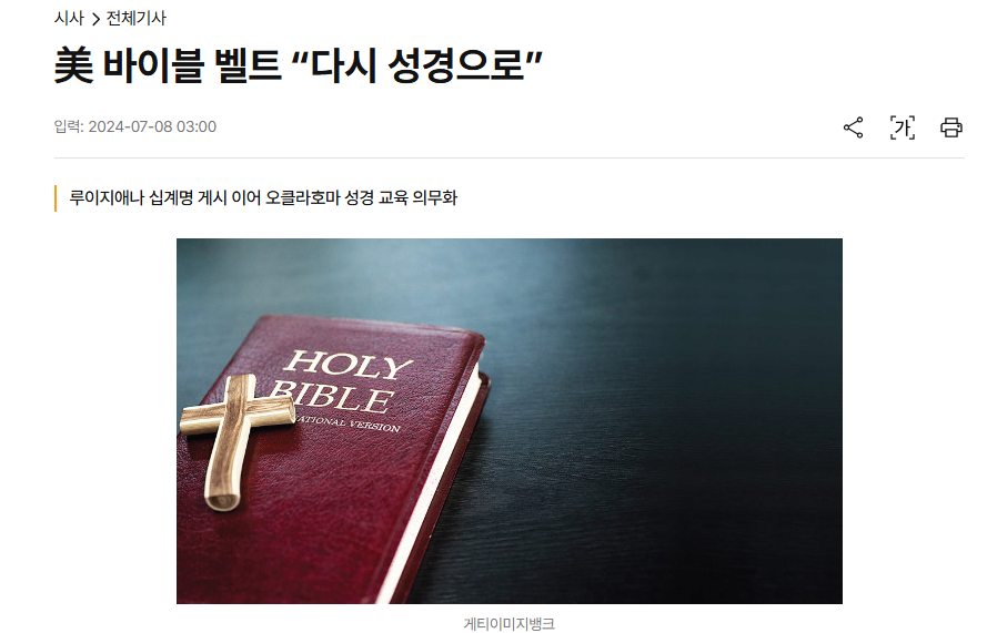 -오클라호마주는 성경 교육 의무화
