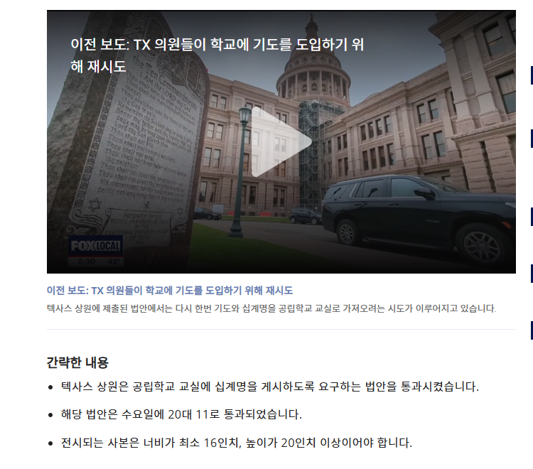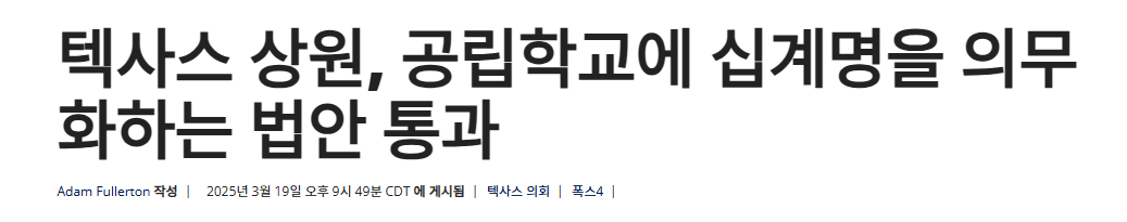 며칠전 텍사스에서도 공립학교에 십계명을 게시하는 게 의무화됨