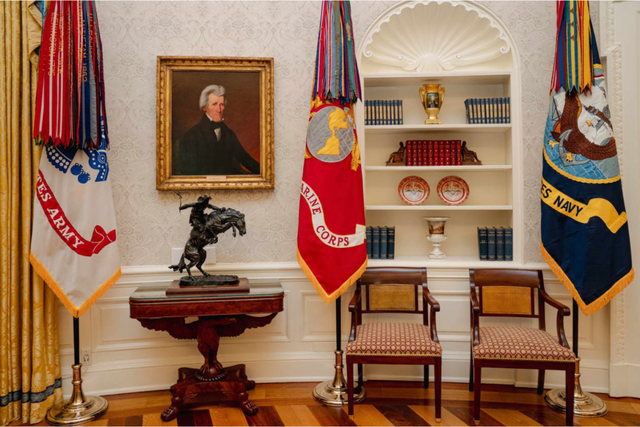 트럼프는 7대 대통령 앤드루 잭슨의 초상화를,