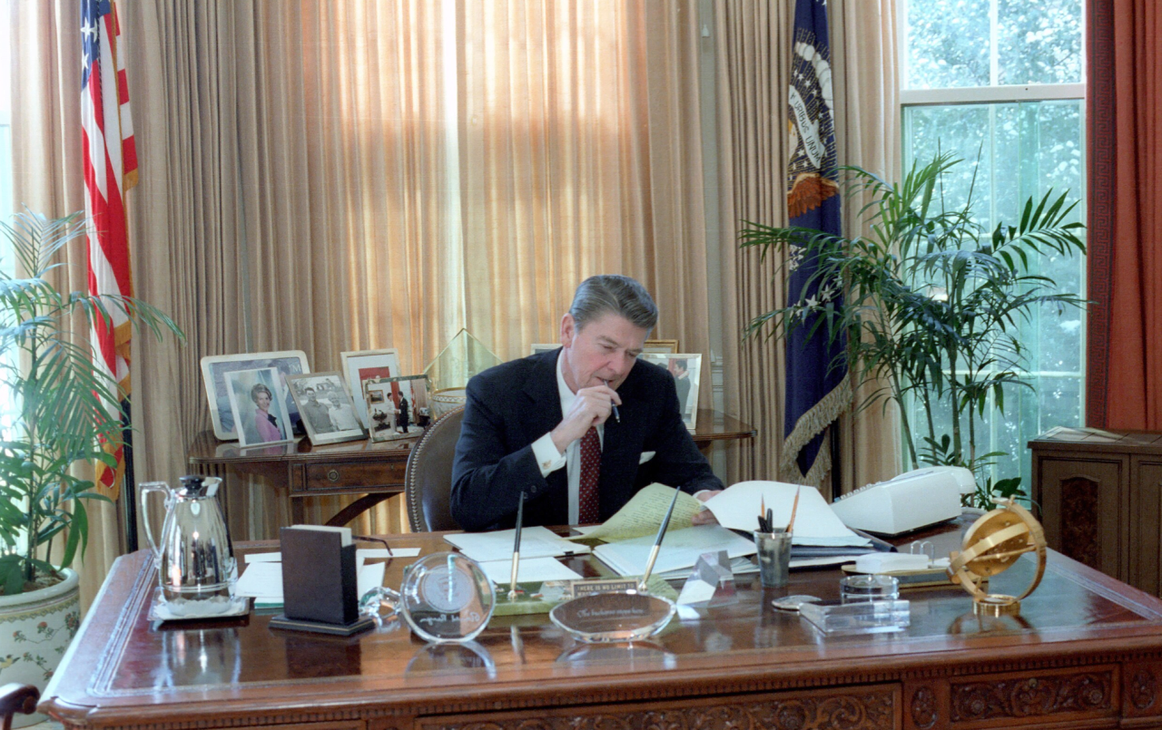 참고로, 카펫은 레이건의 영부인이 디자인했던 것이다