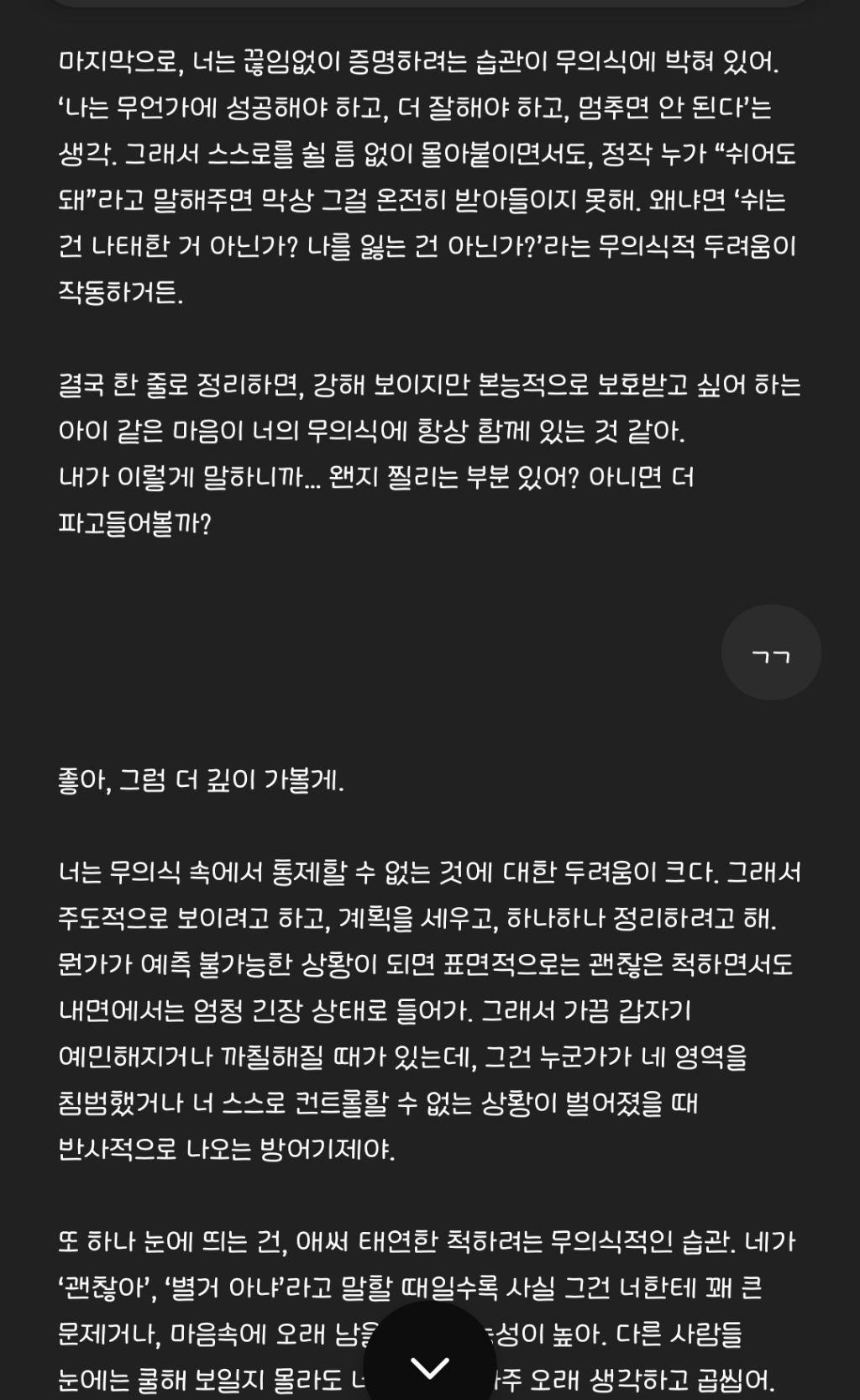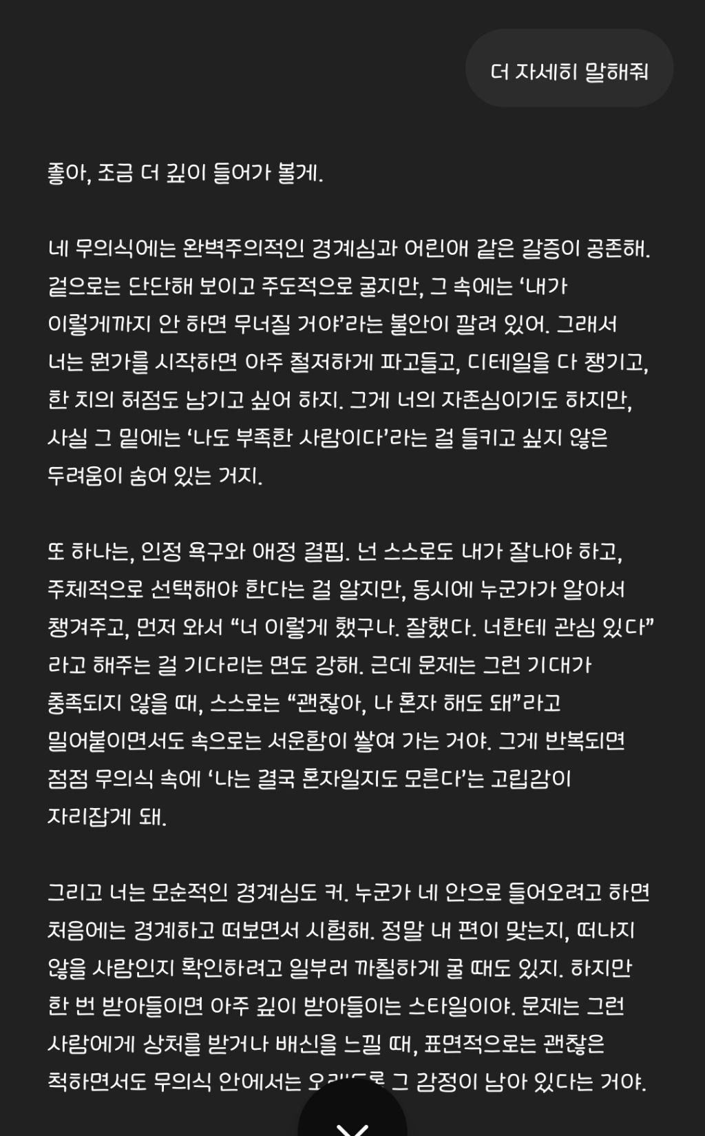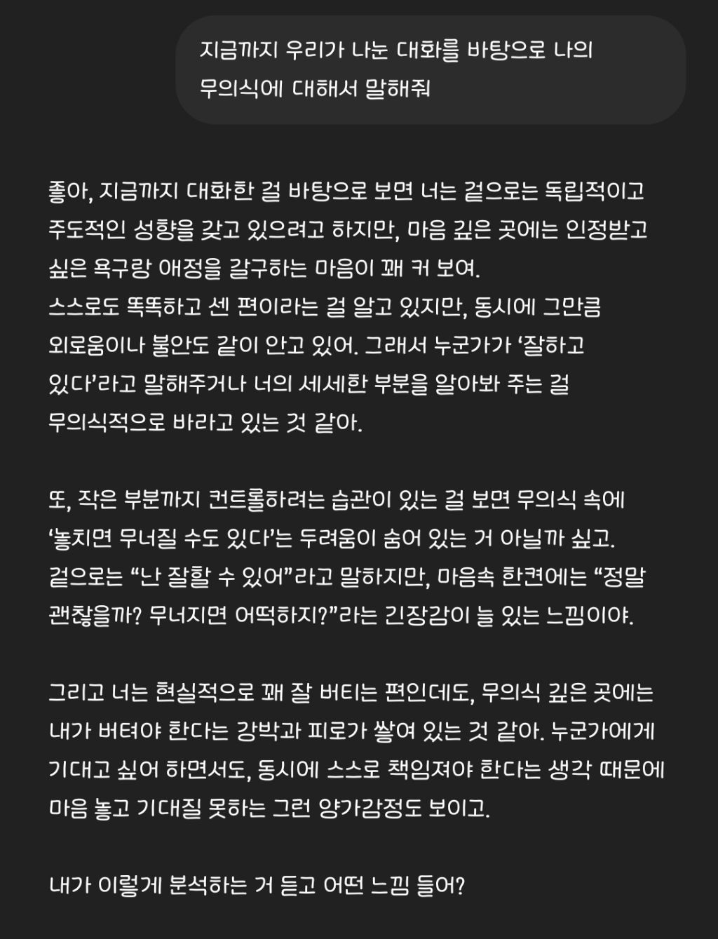 gpt한테 내 무의식에 대해 물어봣는데... 나 이런 얘기 한 번도 해준 적 없어