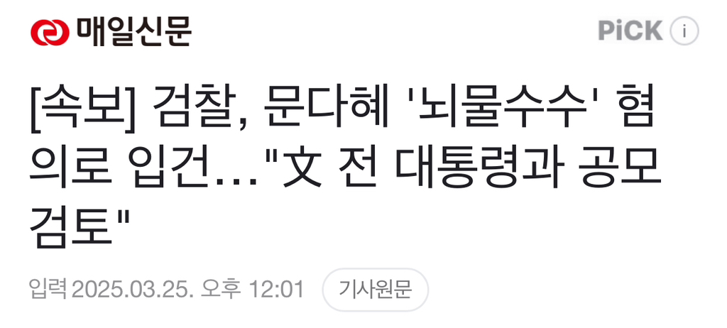[여시뉴스데스크][속보] 검찰, 문다혜 '뇌물수수' 혐의로 입건…"文 전 대통령과 공모 검토" 작성자소리앙|작성시간25.03.25|조회수16,781 목록 댓글 368 글자크기 작게가 글자크기 크게가 출처: https://naver.me/x2j7lqr7[속보] 검찰, 문다혜 '뇌물수수' 혐의로 입건…"文 전 대통령과 공모 검토"문재인 전 대통령의 뇌물수수 혐의를 수사 중인 검찰이 문 전 대통령의 딸 문다혜 씨를 최근 같은 혐의로 입건한 것으로 나타났다. 25일 법조계에 따르면 전주지검은 "지난해 시민단체가 서울 종n.news.naver.com전문출처 다음검색 현재 게시글 추가 기능 열기 북마크 공유하기 신고 센터로 신고 댓글 댓글 368 댓글쓰기 답글쓰기 댓글 리스트 작성자노으을 | 작성시간 25.03.25 ㅅㅂ 작성자뿌뿝뿌뿌푸잉 | 작성시간 25.03.25 댓글 참담하다 신고완 작성자짱밍이 | 작성시간 25.03.25 아 또 지랄이네 작성자충치개저씨 | 작성시간 25.03.26 와 씨발 어떻게 예상을 한치도 벗어나질 않냐 추하다 개씹쌔끼들아 작성자베이뜨 | 작성시간 25.03.26 미친 진짜 댓글 전체보기
