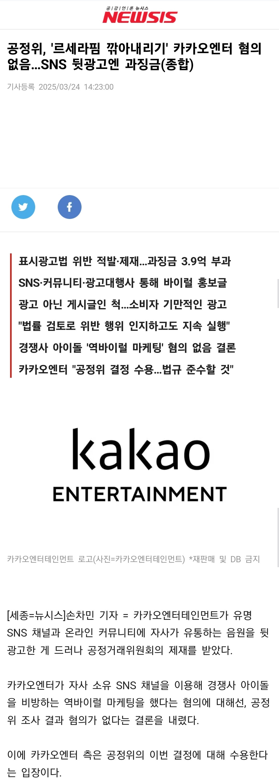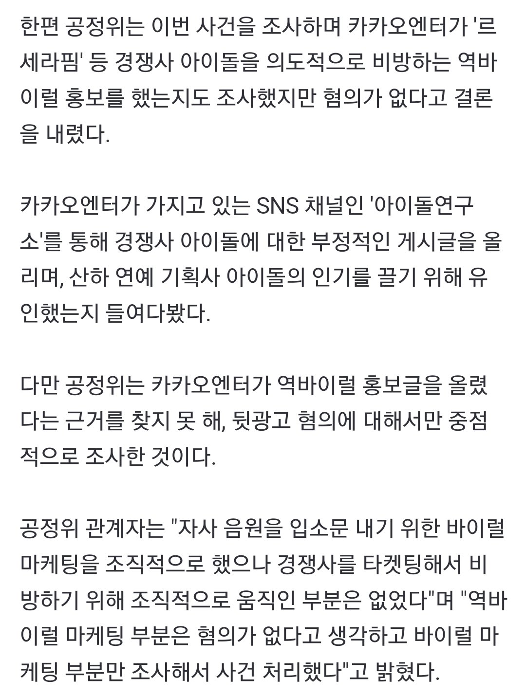 2025년 3월 24일 공정위 조사 결과 역바이럴 혐의 없음