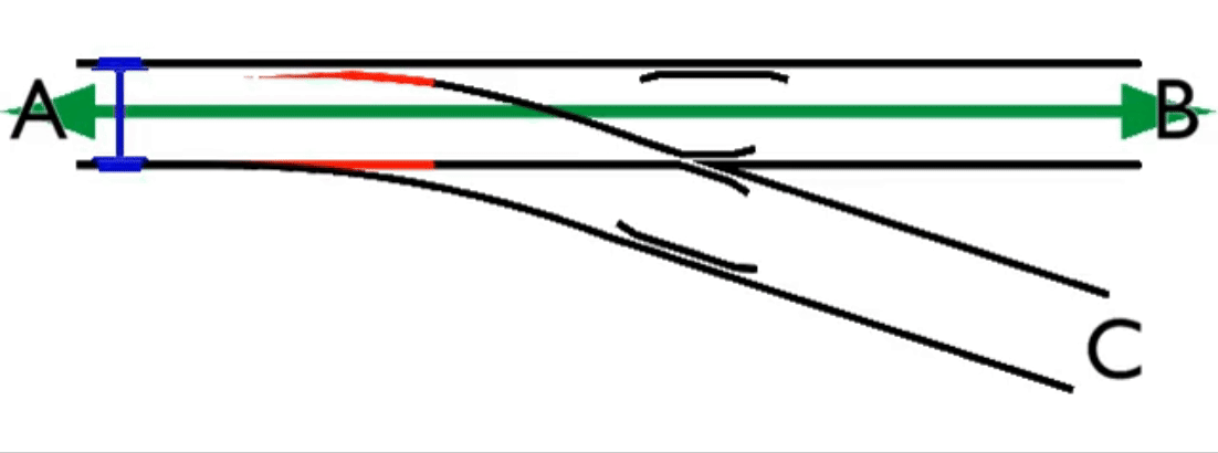 A와 B 사이 빨간 부분이 텅 레일이다