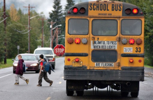 (미국은 스쿨버스 주변 일시정지가 원칙이다)