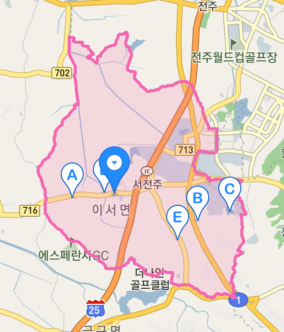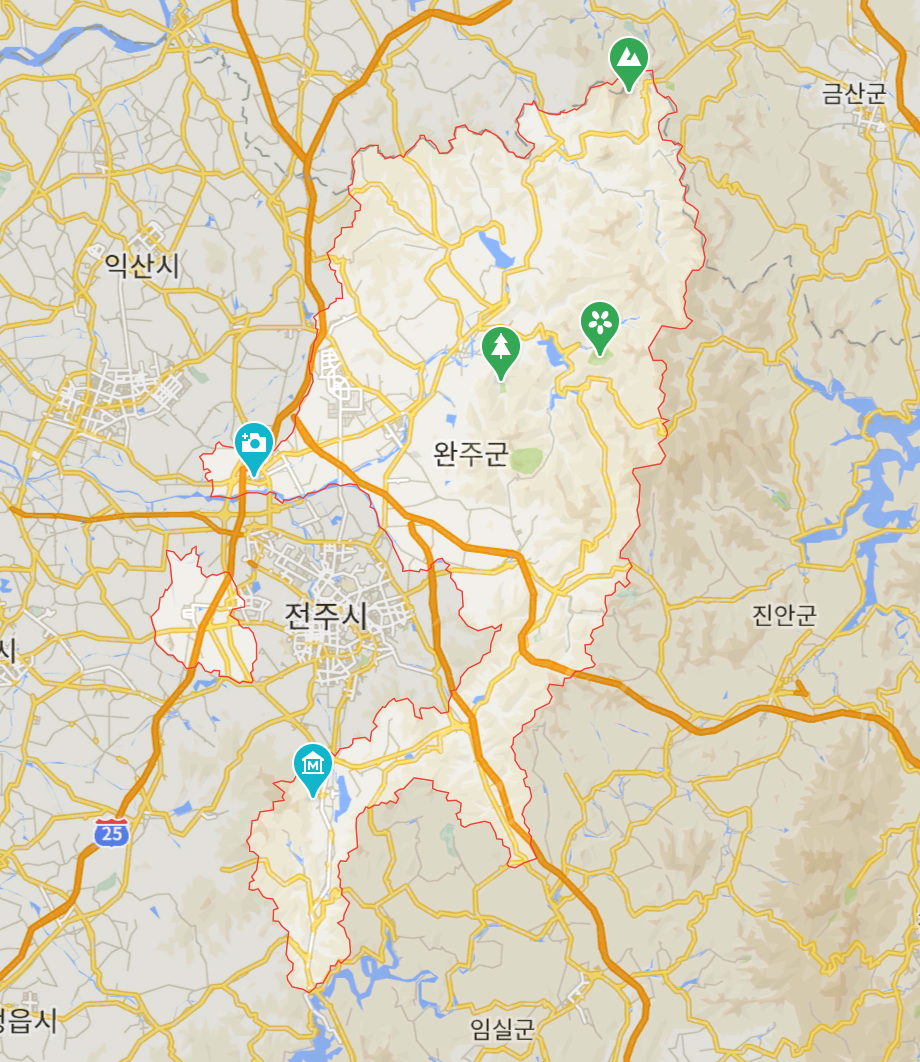 전주시를 사이로 좌우가 갈라져있는 모습을 볼 수 있다
