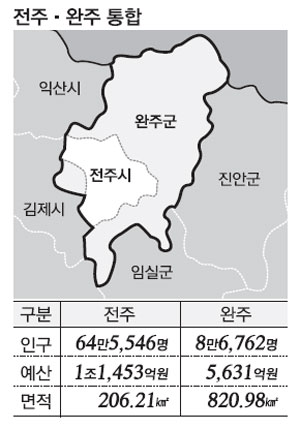 "야 그럼 전주하고 완주를 그냥 통합시키는건 어떨까?"