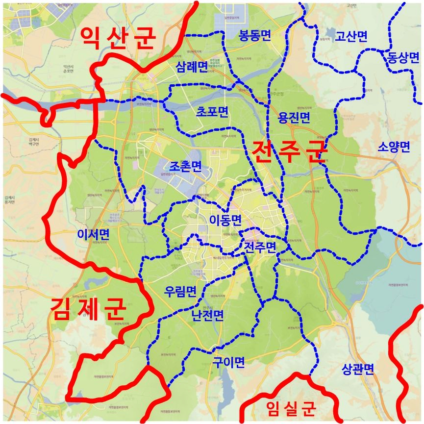 해방 이후에는 지금의 전주시내를 거의 아우르는 크기로 변모한다