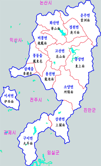 왜 이서면은 완주군임에도 불구하고 동떨어져있는지