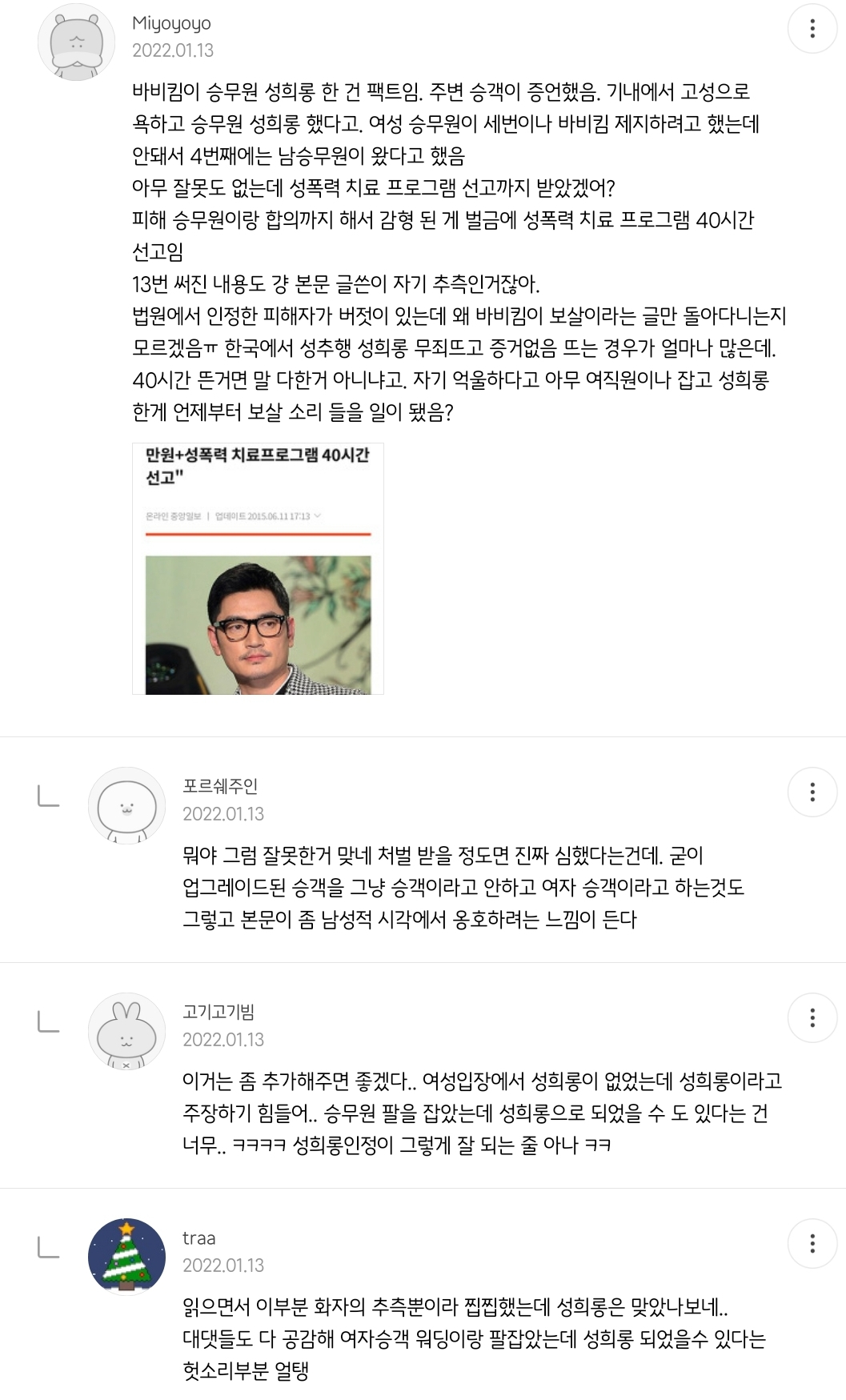 항공사측에서 일처리 못한것도 팩트 그 와중에 승무원 성희롱으로 처벌받은것 역시 팩트라고 함