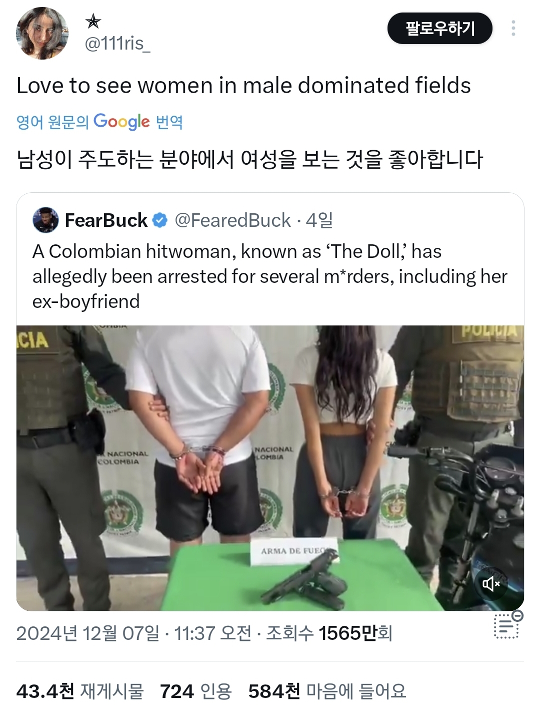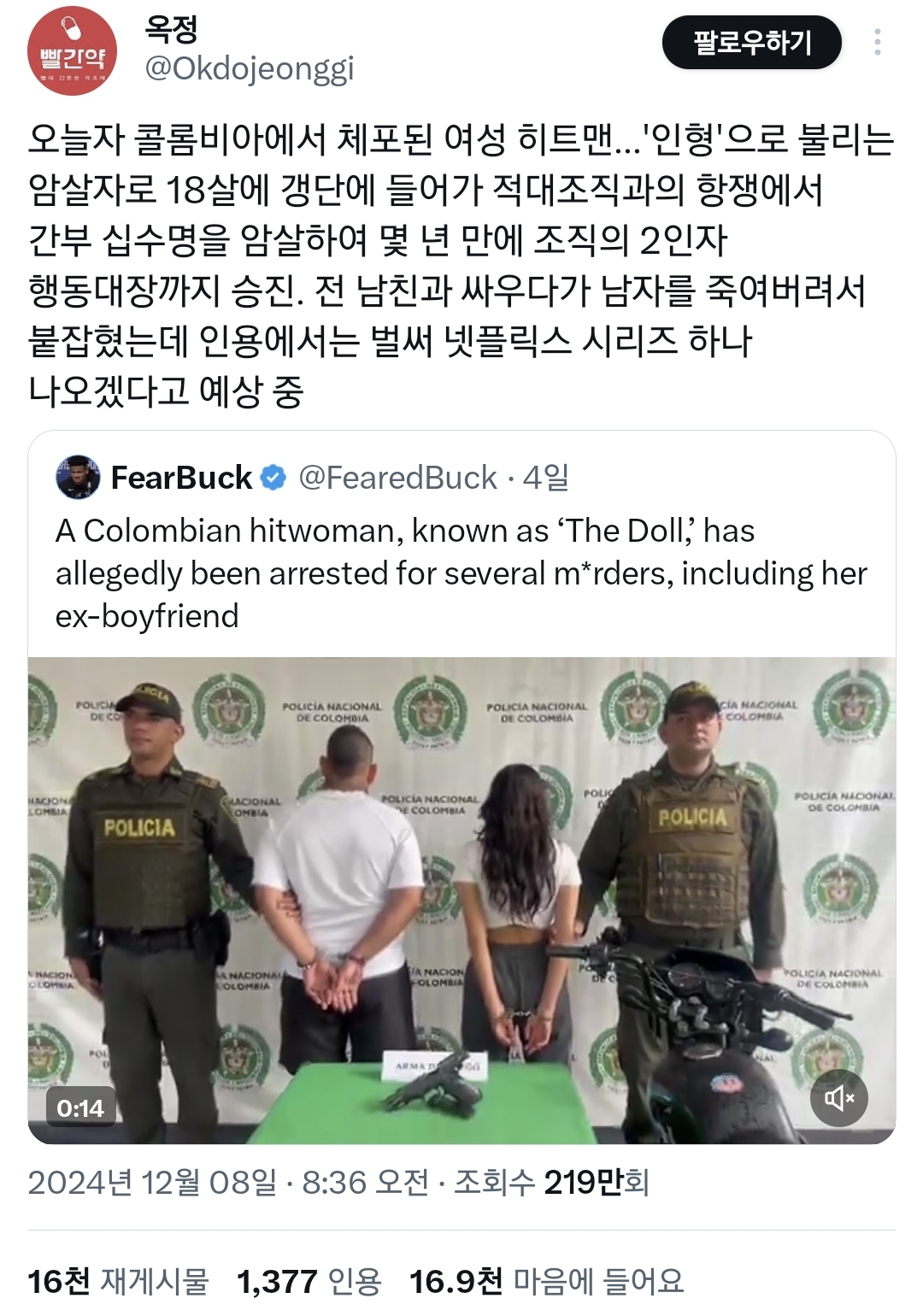A Colombian hitwoman, known as ‘The Doll,’ has allegedly been arrested for several m*rders, including her ex-boyfriend pic.twitter.com/jbkRtZ6x7i