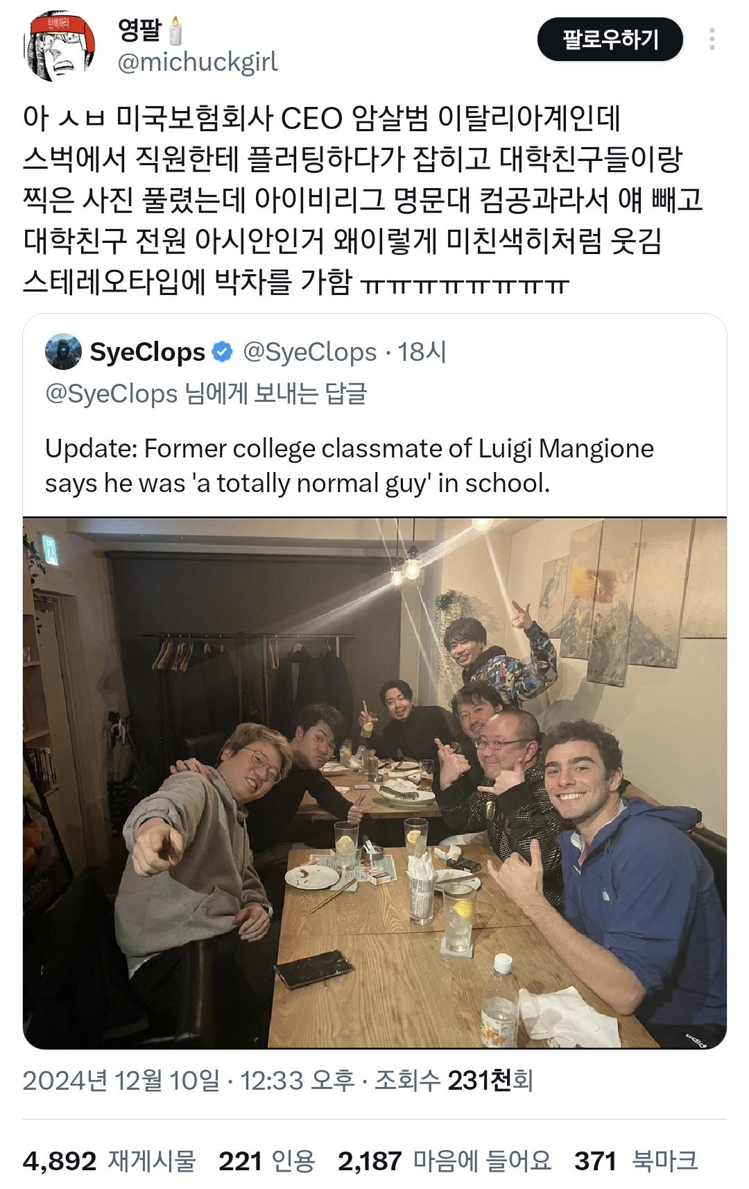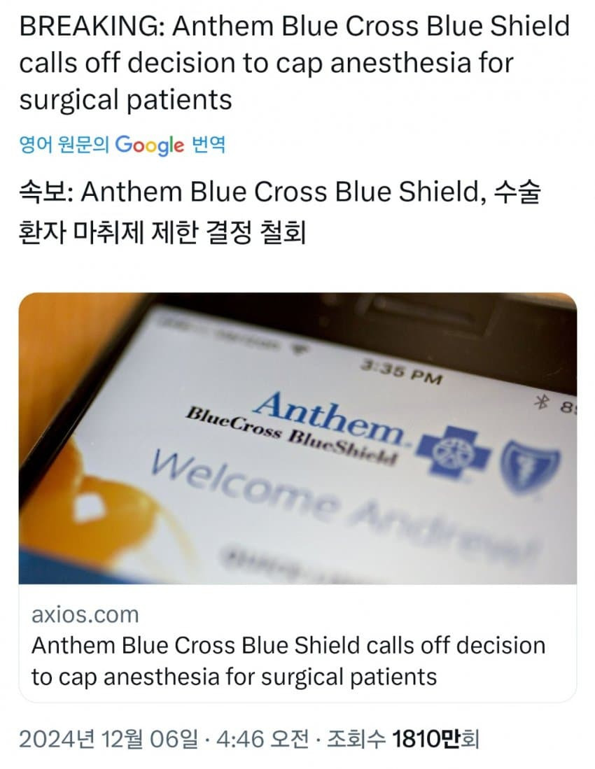 최근 미국의 거대 보험회사 유나이티드 헬스케어의 CEO가 암살당하는 사건이 발생했는데