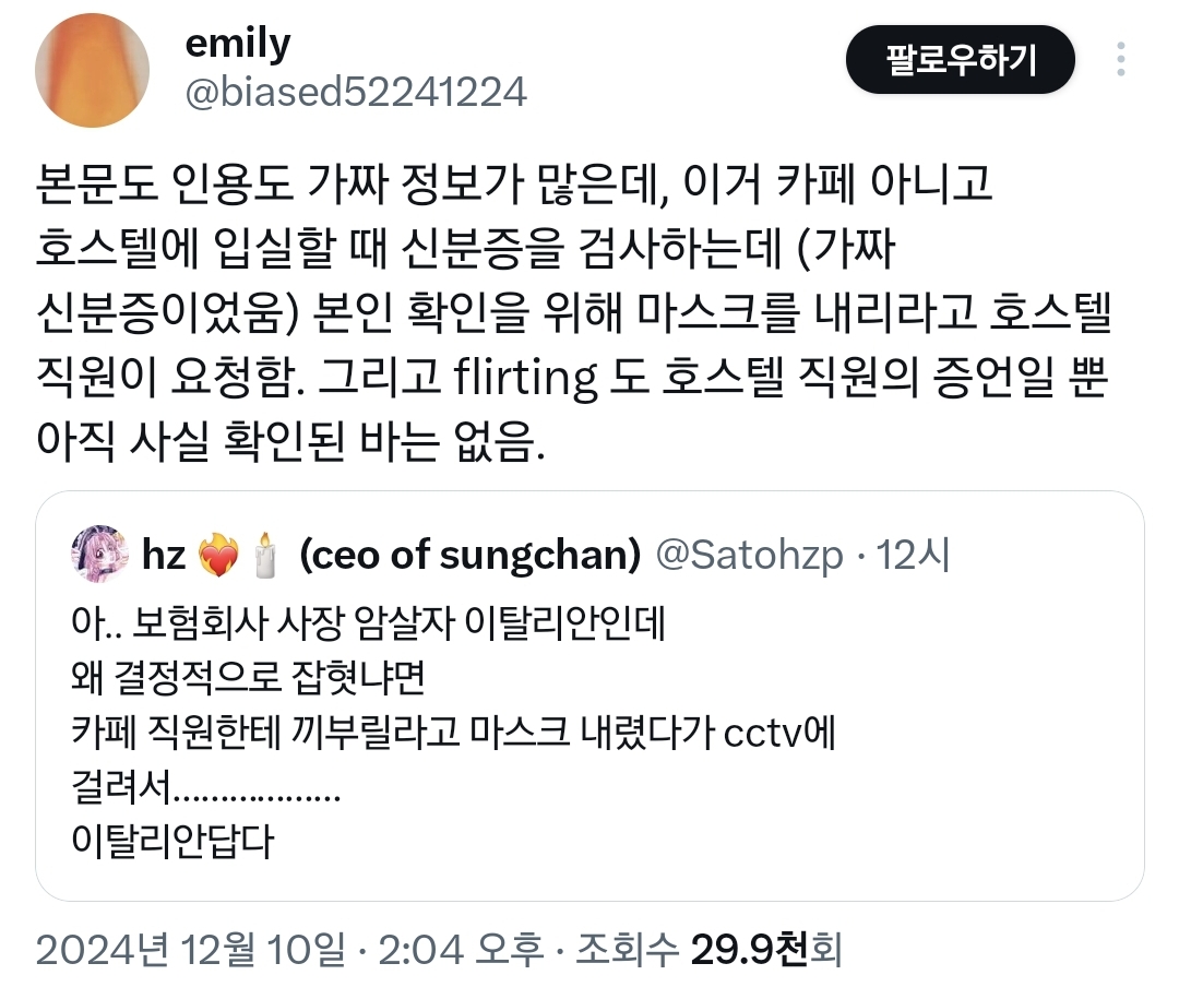 진범이 잡히는 걸 늦추기 위해서 cctv속 진범의 옷차림을